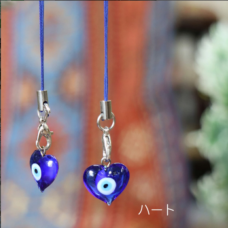 ナザルボンジュウ ストラップ ハート (両面)青い目玉のお守り Nazar Boncug