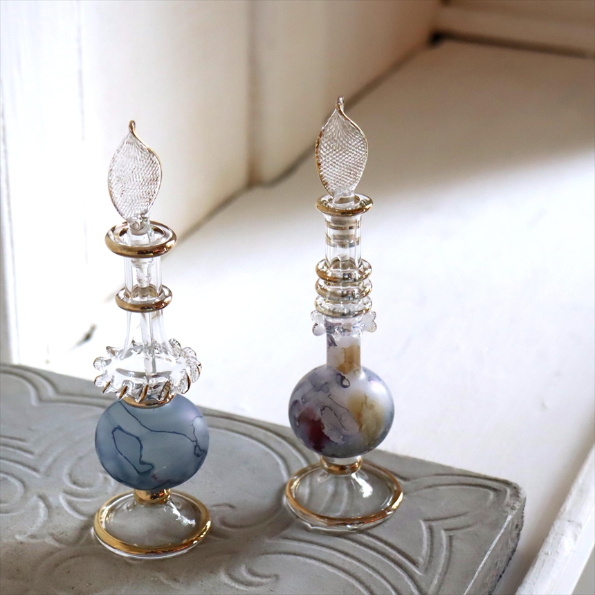 エジプト ガラス香水瓶 2本セット マーブル マットペイント Egyptian Glass Bottle