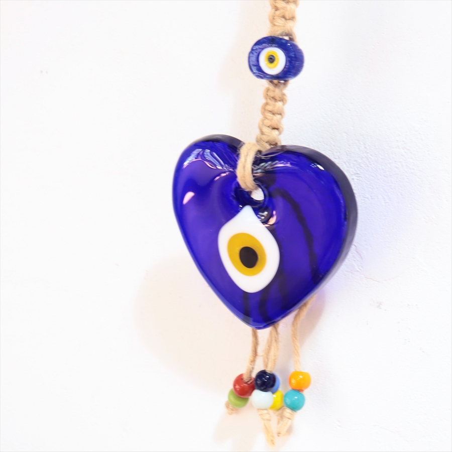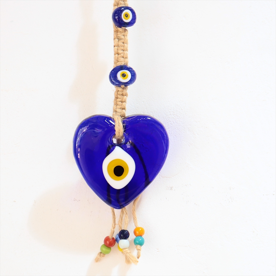 ナザールボンジュウ ハート マクラメ 麻ひも飾り+地中海ビーズ ハンドクラフト