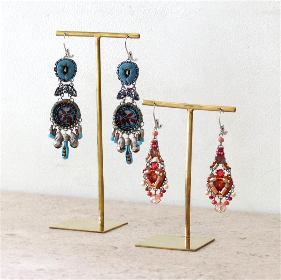 趣のあるアンティーク調真鍮(BRASS)のピアス1セット用のスタンドです。アクセサリーショップのような雰囲気でお気にいりの特別なピアスを飾ってお楽しみください。