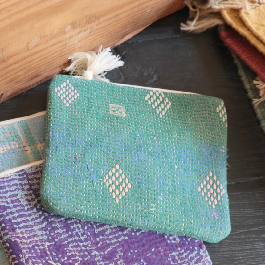 4. カンタ刺繍 ミニポーチ フラットポーチ16.5×19cm ヴィンテージカンタ 現品