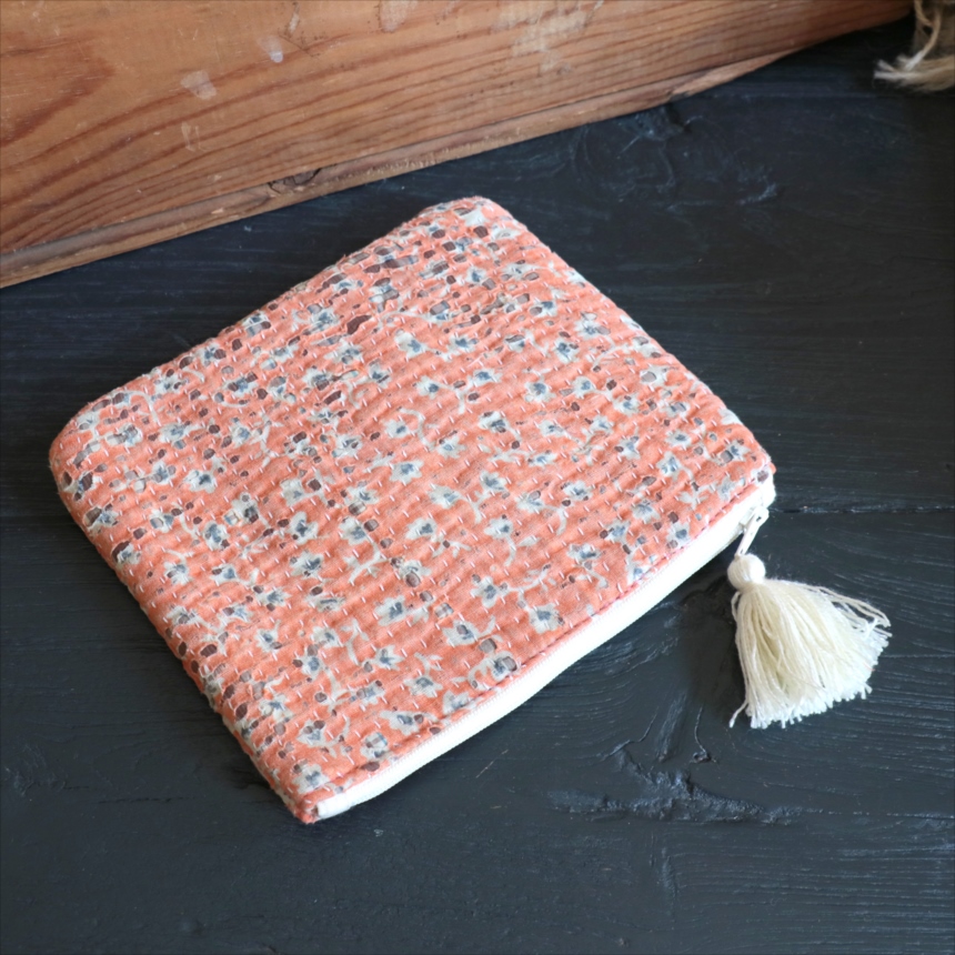 4. カンタ刺繍 ミニポーチ フラットポーチ16.5×19cm ヴィンテージカンタ 現品