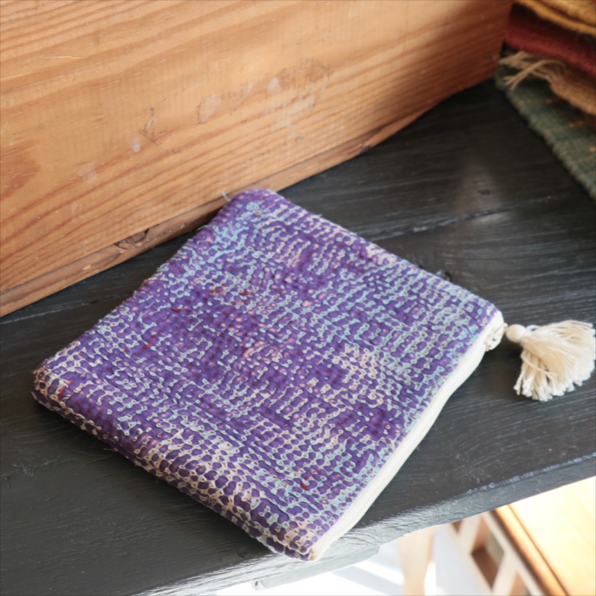 - カンタ刺繍 ミニポーチ フラットポーチ16.5×19cm ヴィンテージカンタ 現品