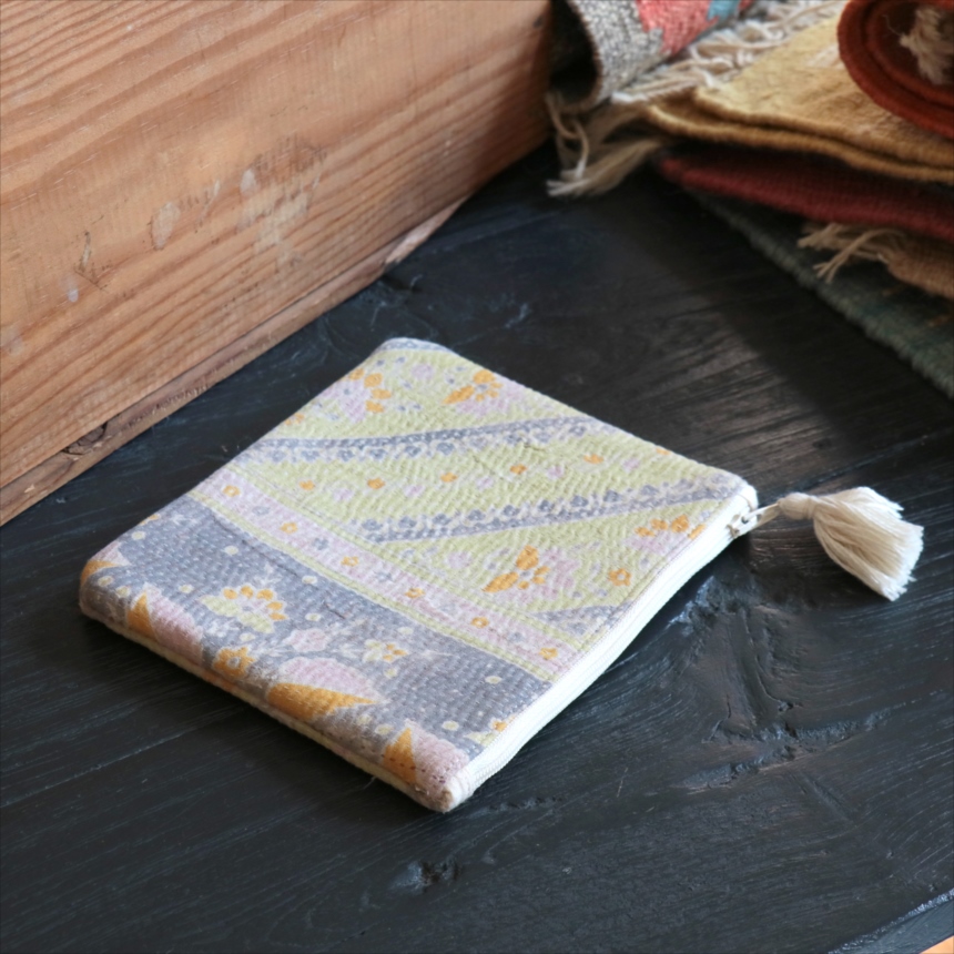 - カンタ刺繍 ミニポーチ フラットポーチ16.5×19cm ヴィンテージカンタ 現品