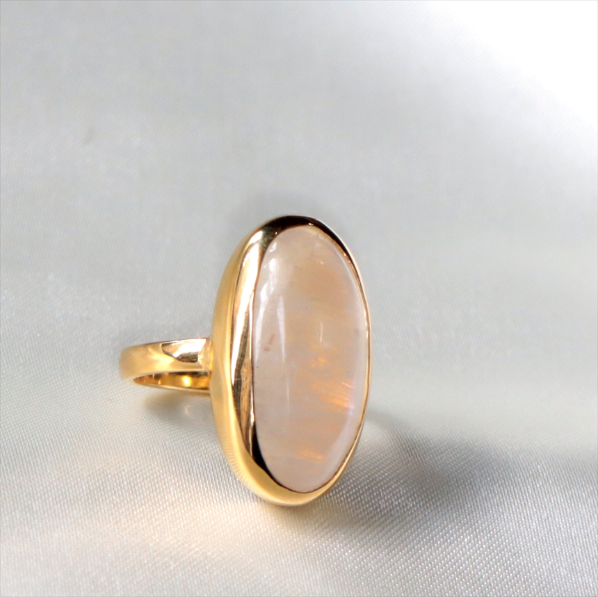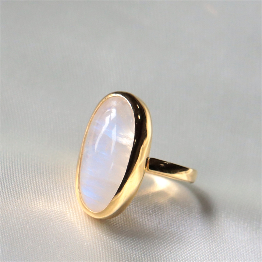 - レインボームーンストーン シルバーリング 大粒 縦長オーバル 18KGF 天然石 トルコジュエリー カラーストーン