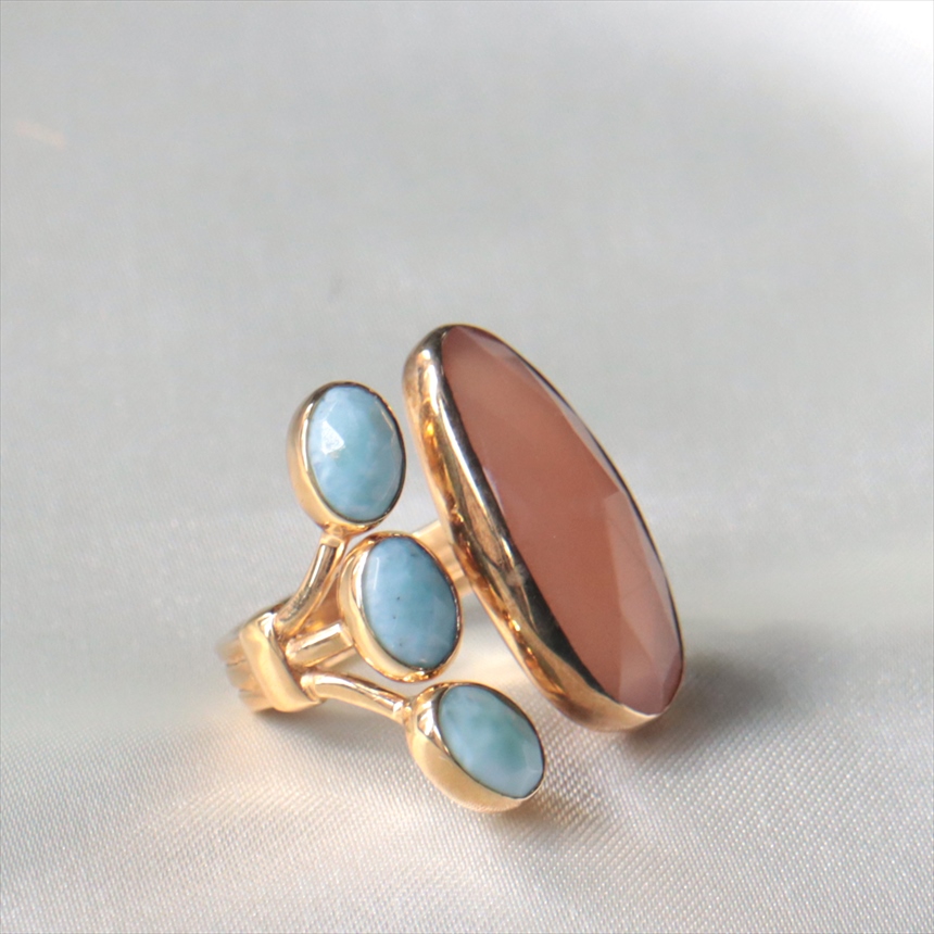 サンストーン ラリマー シルバーリング 18KGF 天然石 四つのストーン カラーストーン