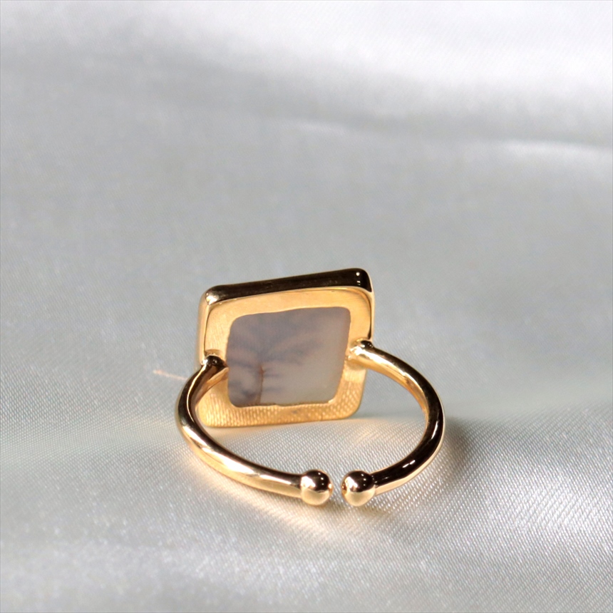 - デンドライト シルバーリング スクエア 18KGF 天然石 トルコジュエリー カラーストーン