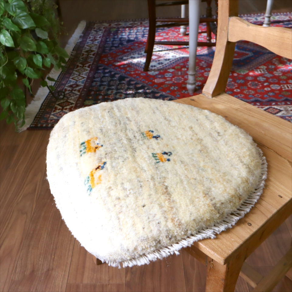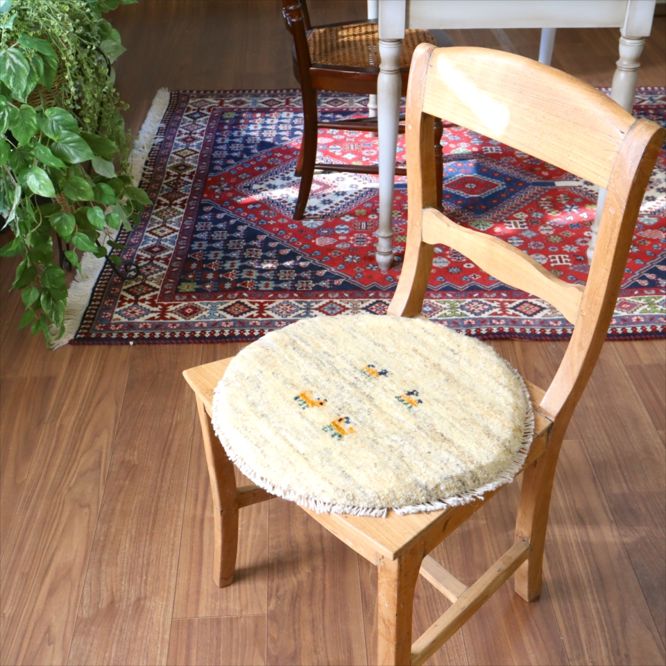 ギャッベ 円形座布団サイズ φ42cm ナチュラルアイボリー ベージュ