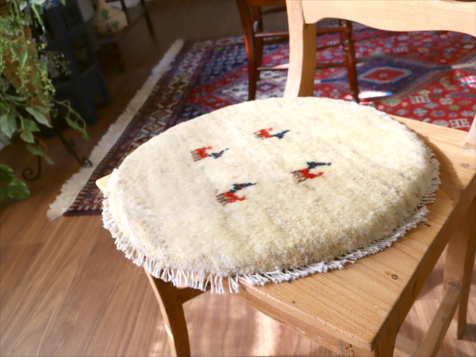 ギャッベ 円形座布団サイズ φ40cm ナチュラルアイボリー ベージュ