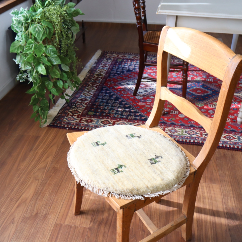 ギャッベ 円形座布団サイズ φ40cm ナチュラルアイボリー ベージュ