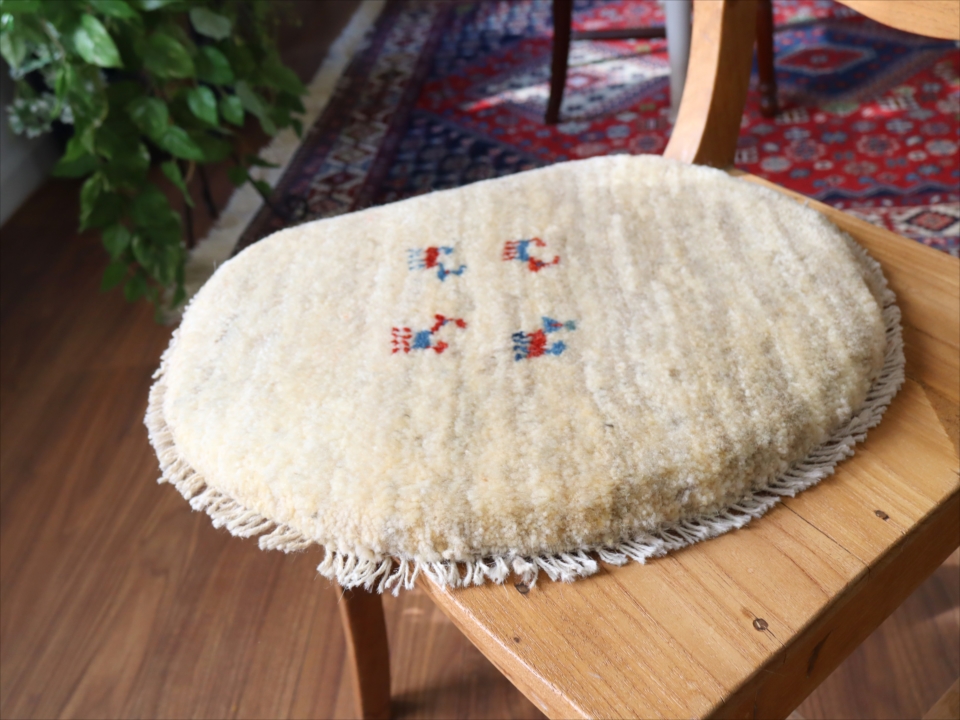ギャッベ 円形座布団サイズ φ41cm ナチュラルアイボリー ベージュ