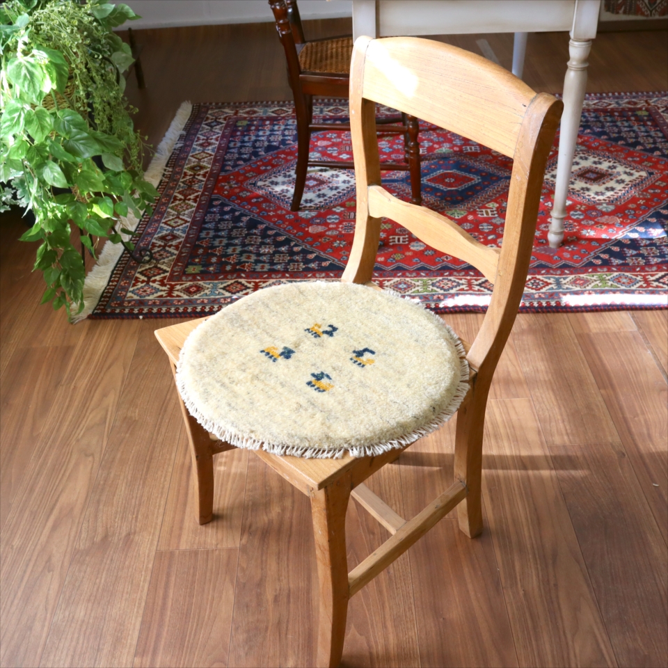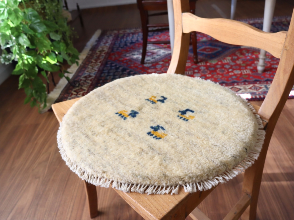 ギャッベ 円形座布団サイズ φ42cm ナチュラルアイボリー ベージュ
