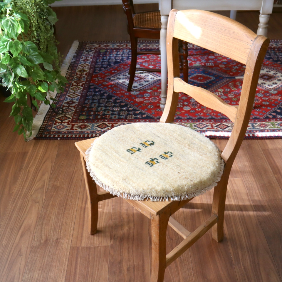 ギャッベ 円形座布団サイズ φ41cm ナチュラルアイボリー ベージュ