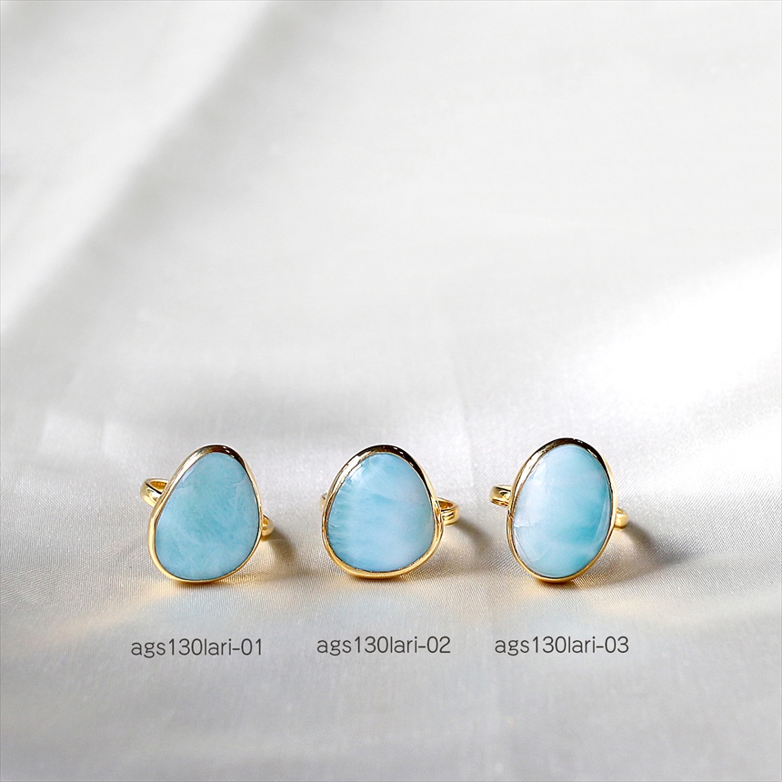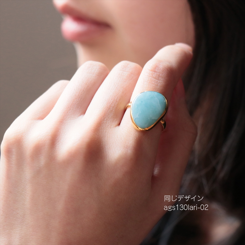 - ラリマー ラフカット シルバーリング 18KGF 天然石 トルコジュエリー カラーストーン