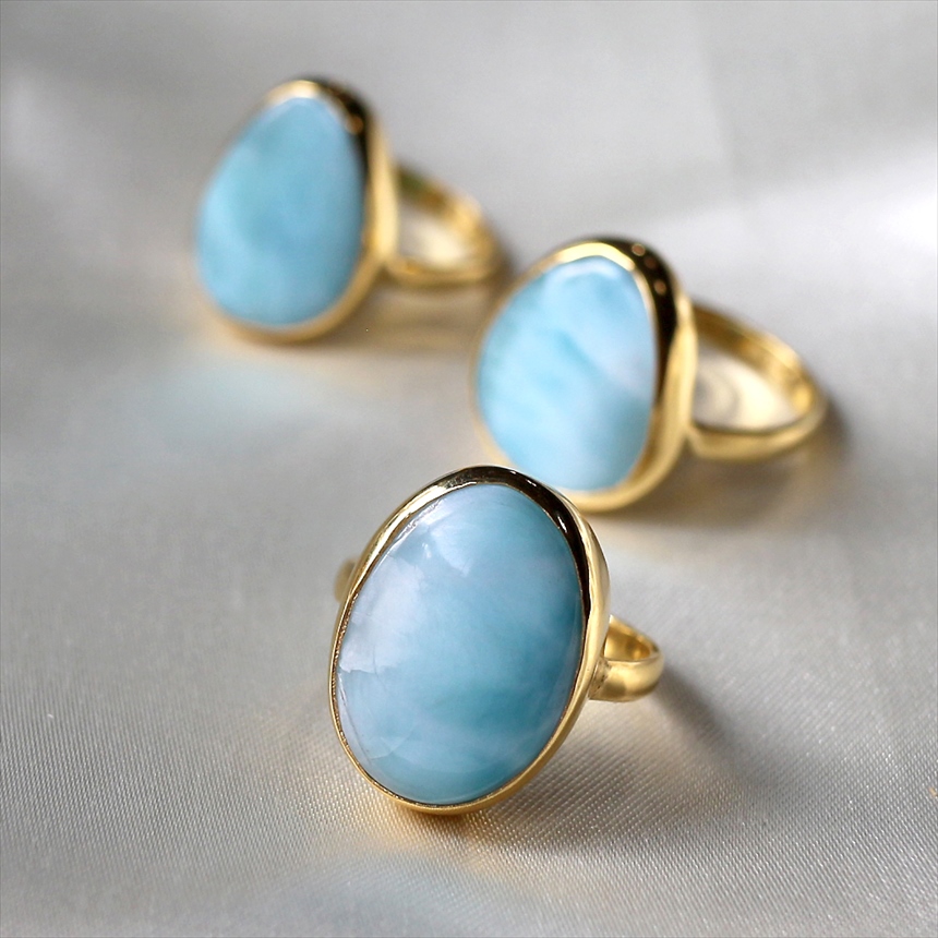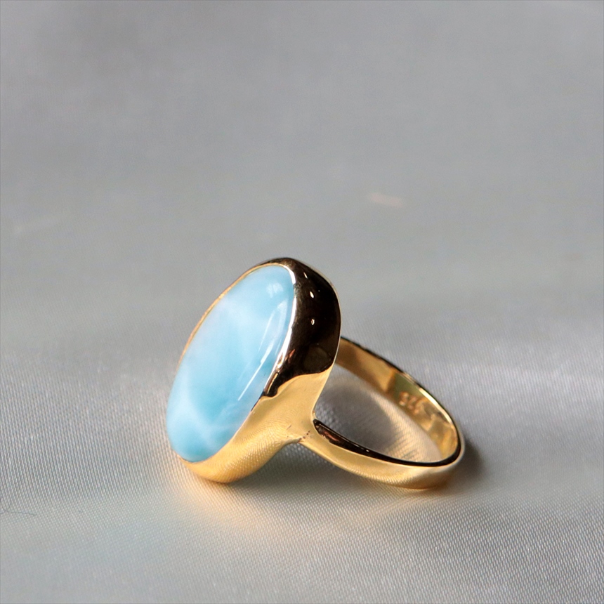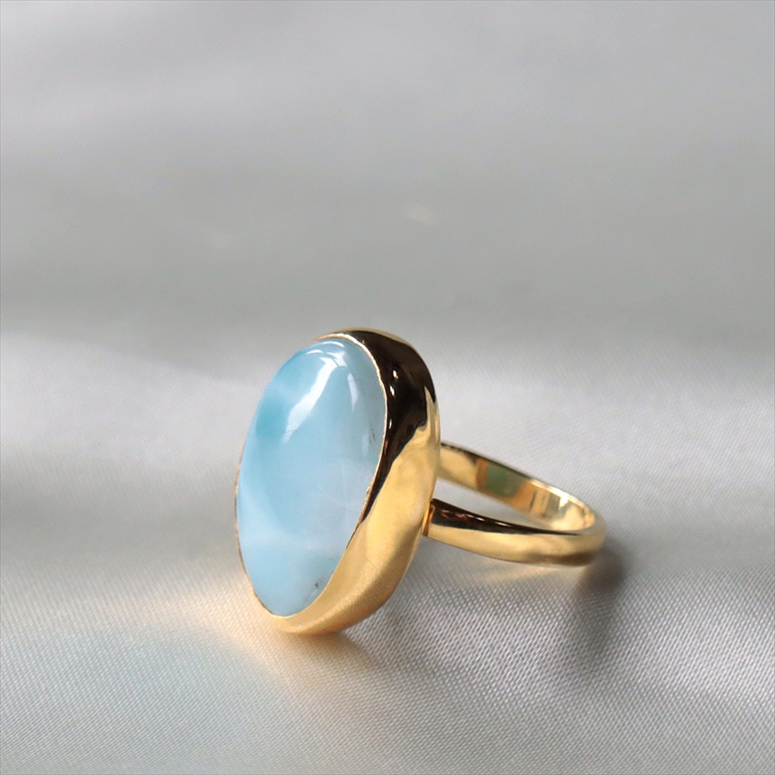 ラリマー シルバーリング オーバル 18KGF 天然石 トルコジュエリー カラーストーン