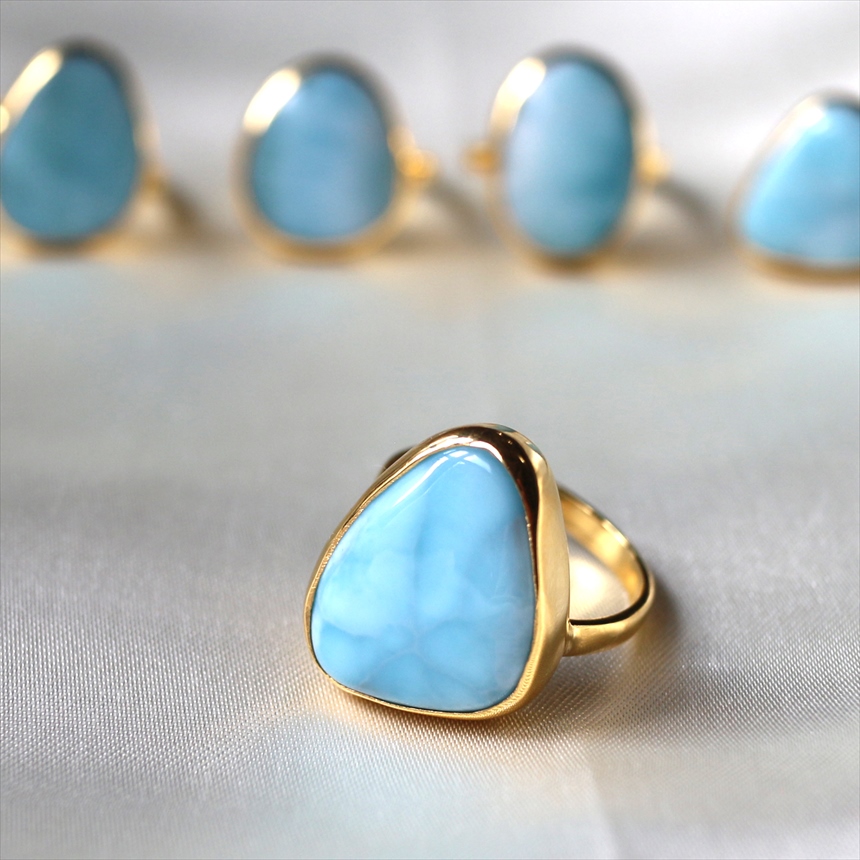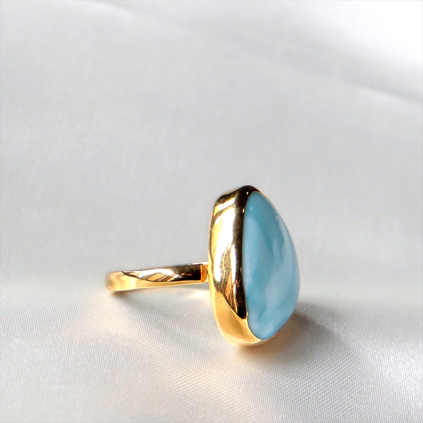 - ラリマー シルバーリング ラフカット 18KGF 天然石 トルコジュエリー カラーストーン