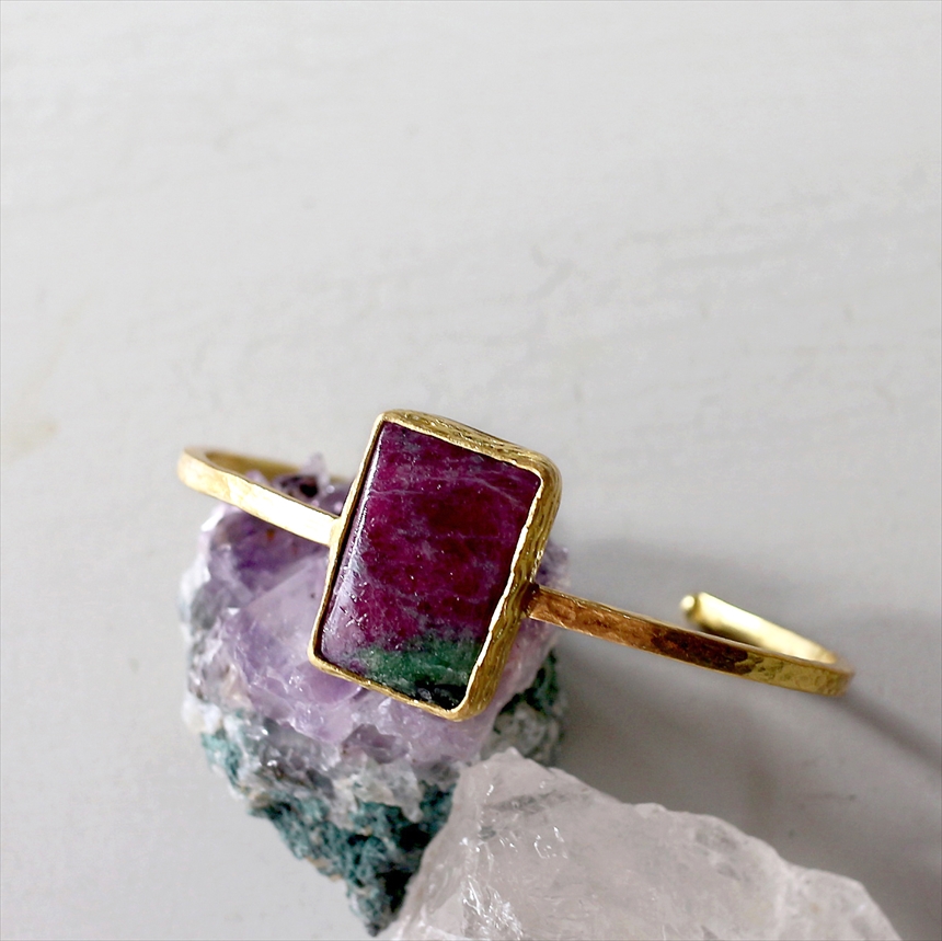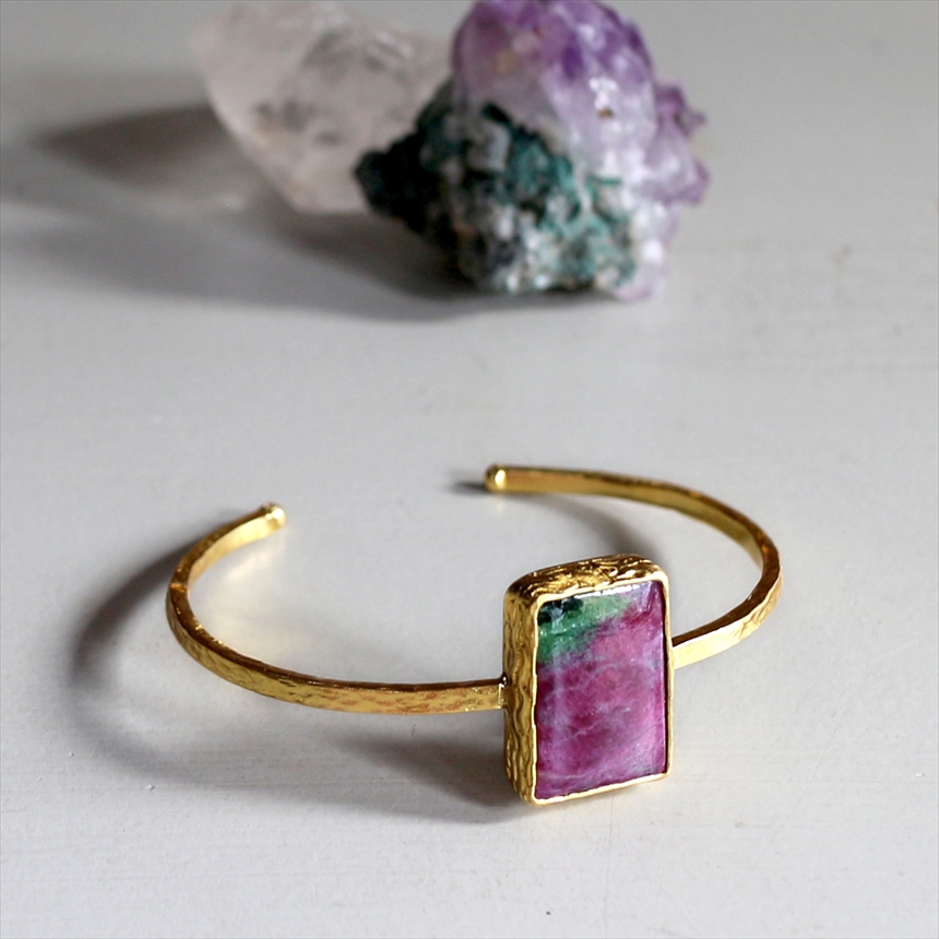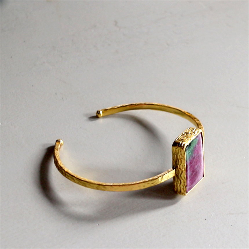 アルサメイア ルビーインゾイサイト ビッグストーンバングル 大粒 天然石22KGP トルコジュエリード