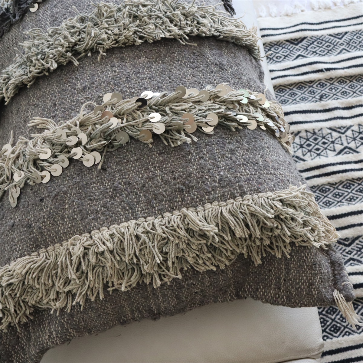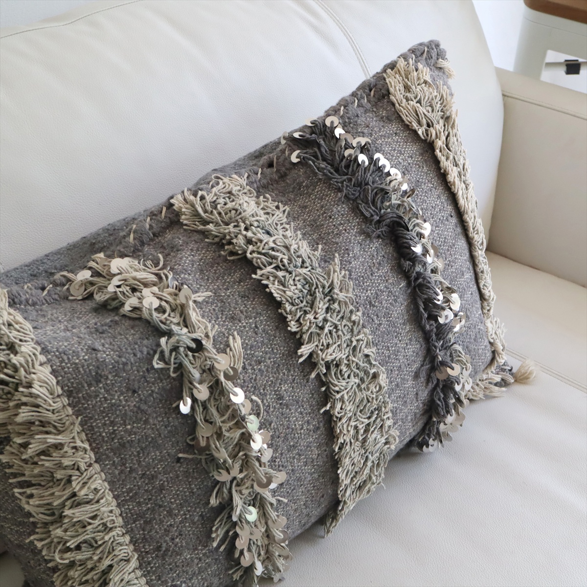 - オールドキリムクッション モロッコ オリジナル62×43cm ベルベル族 ハンドラ グレー スパンコール