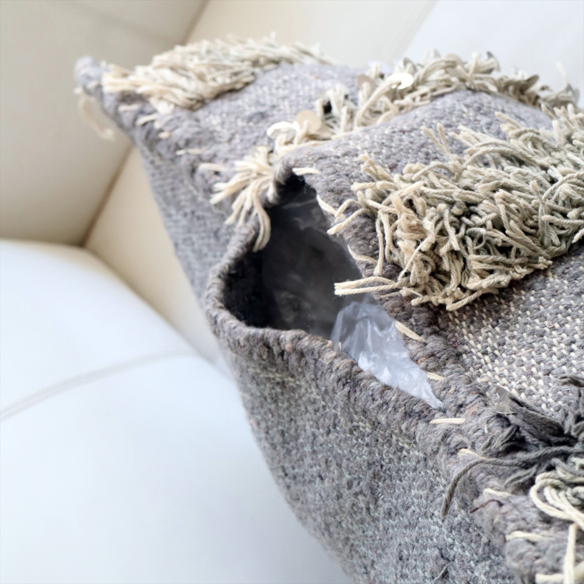 オールドキリムクッション モロッコ オリジナル62×43cm ベルベル族 ハンドラ グレー スパンコール