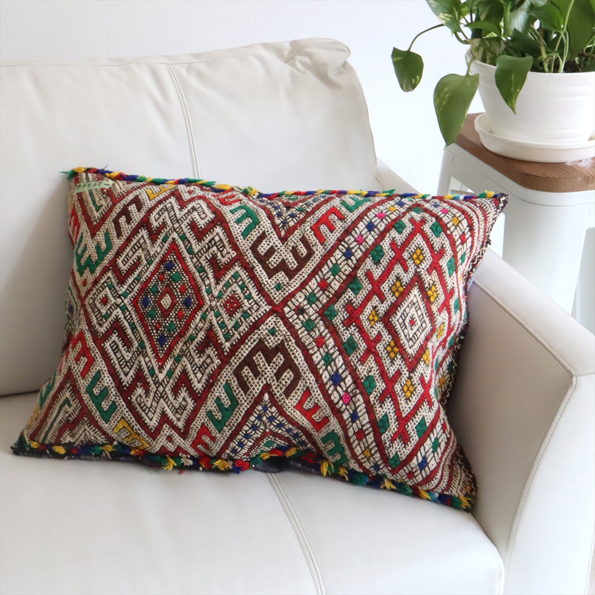 - オールドキリムクッション モロッコ オリジナル56×40cm ゼアン ジジム織り
