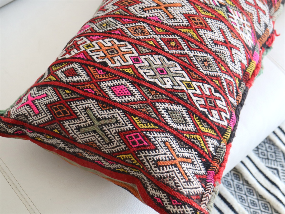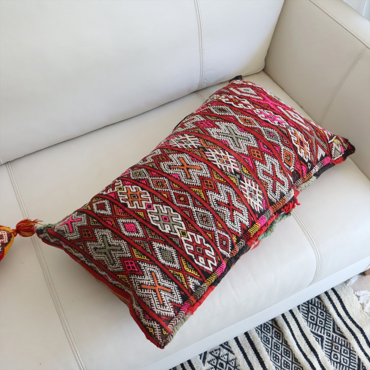 - オールドキリムクッション モロッコ オリジナル55×33cm ベルベル族 レッド ジジム