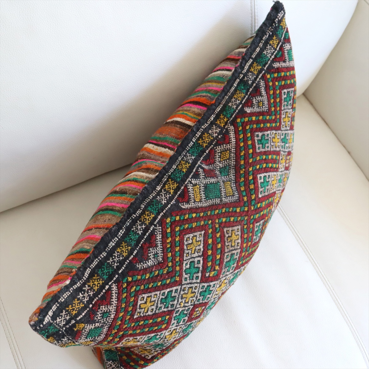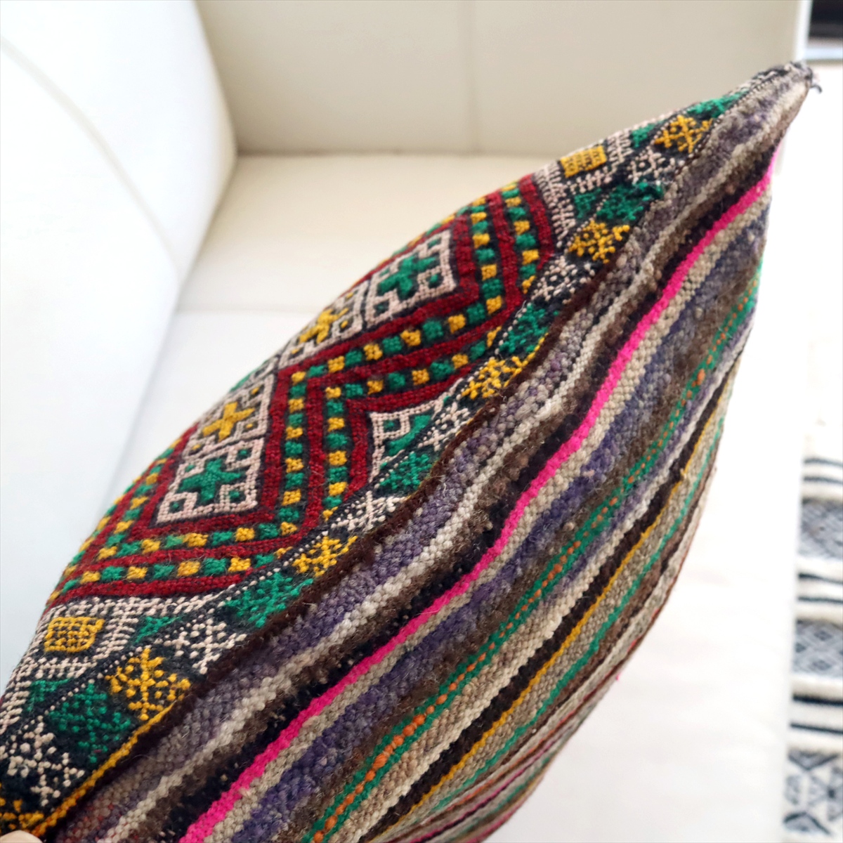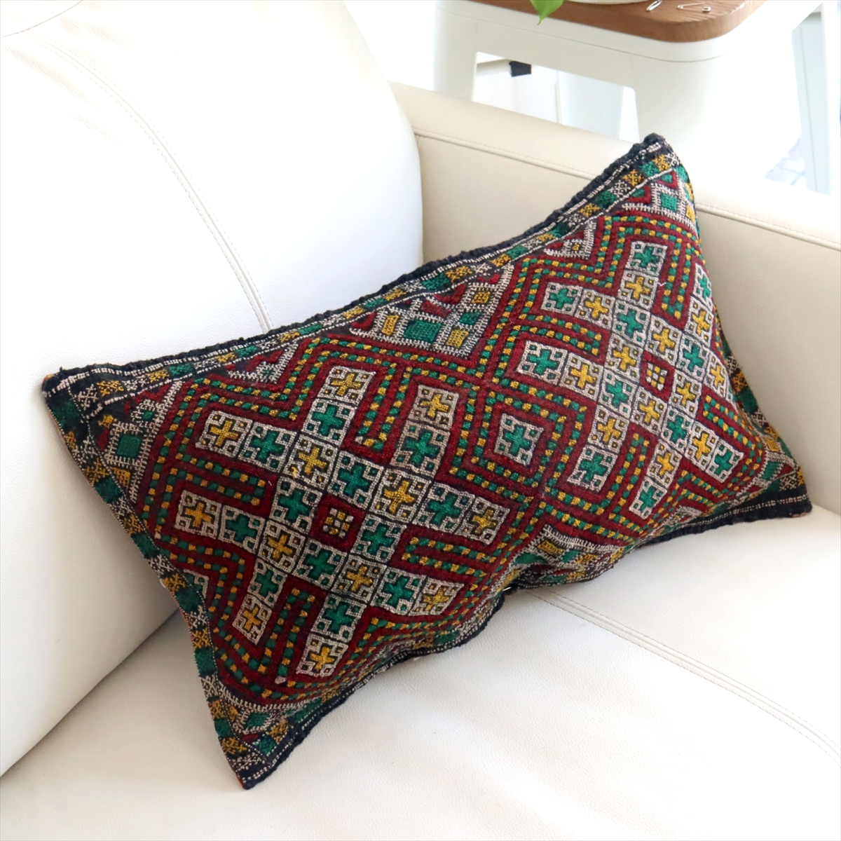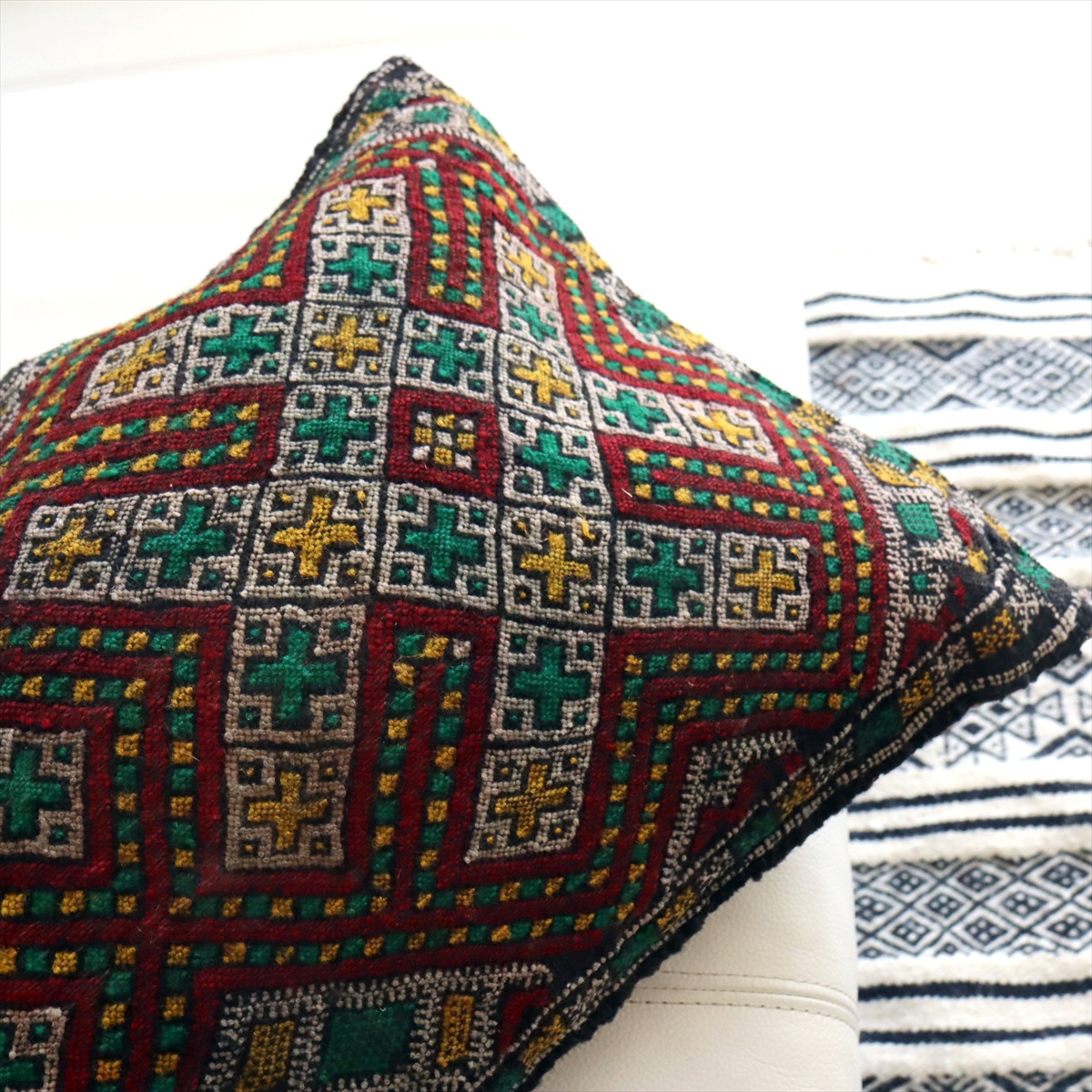 Key:オールドキリムクッションカバー ヴィンテージキリム モロッコ 手織りラグ トライバルラグ 一点もの 現品販売 キリムクッション ピロー 両面 Morocco pillow Cushion Kilim cushion