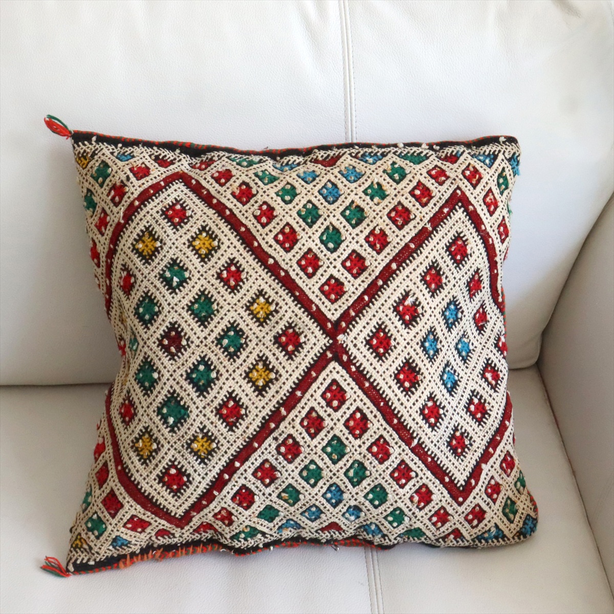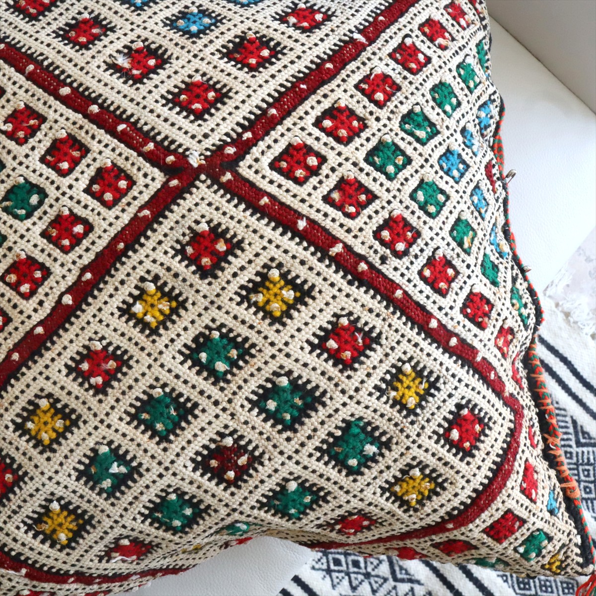 - オールドキリムクッション モロッコ オリジナル41×39cm ゼアン カラフルなジジム