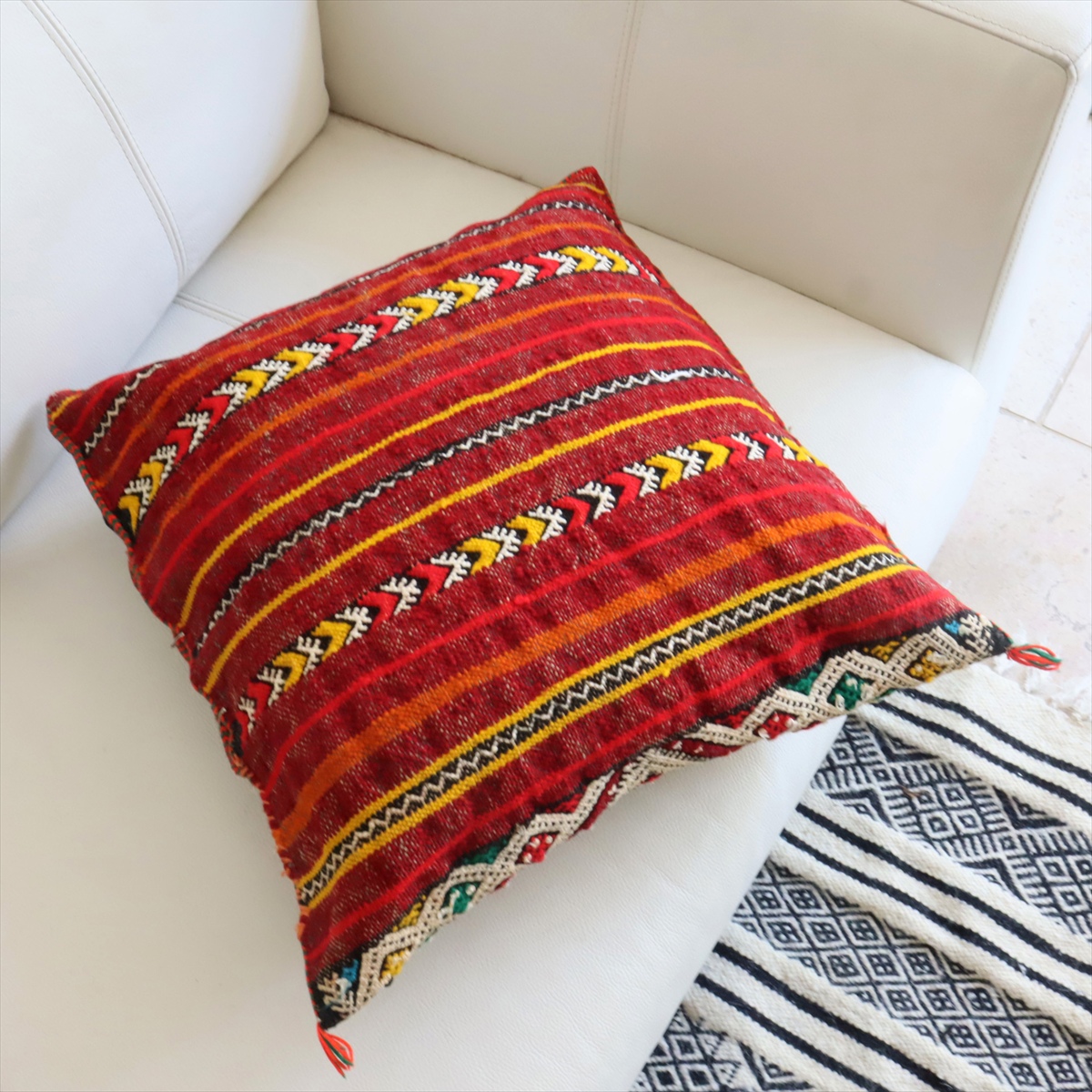 Key:オールドキリムクッションカバー ヴィンテージキリム モロッコ 手織りラグ トライバルラグ 一点もの 現品販売 キリムクッション ピロー 両面 Morocco pillow Cushion Kilim cushion