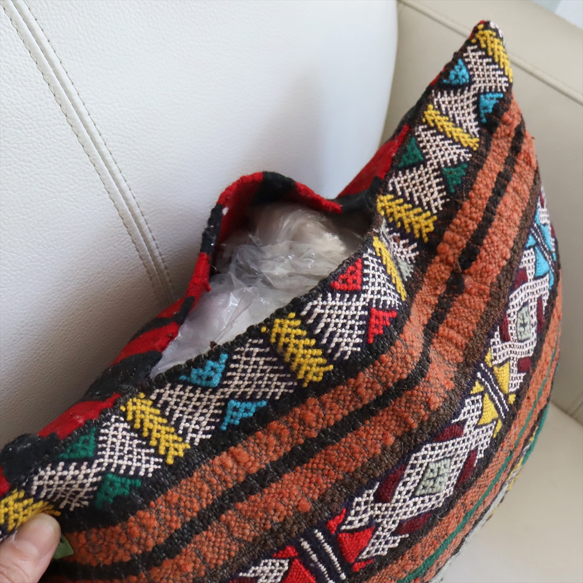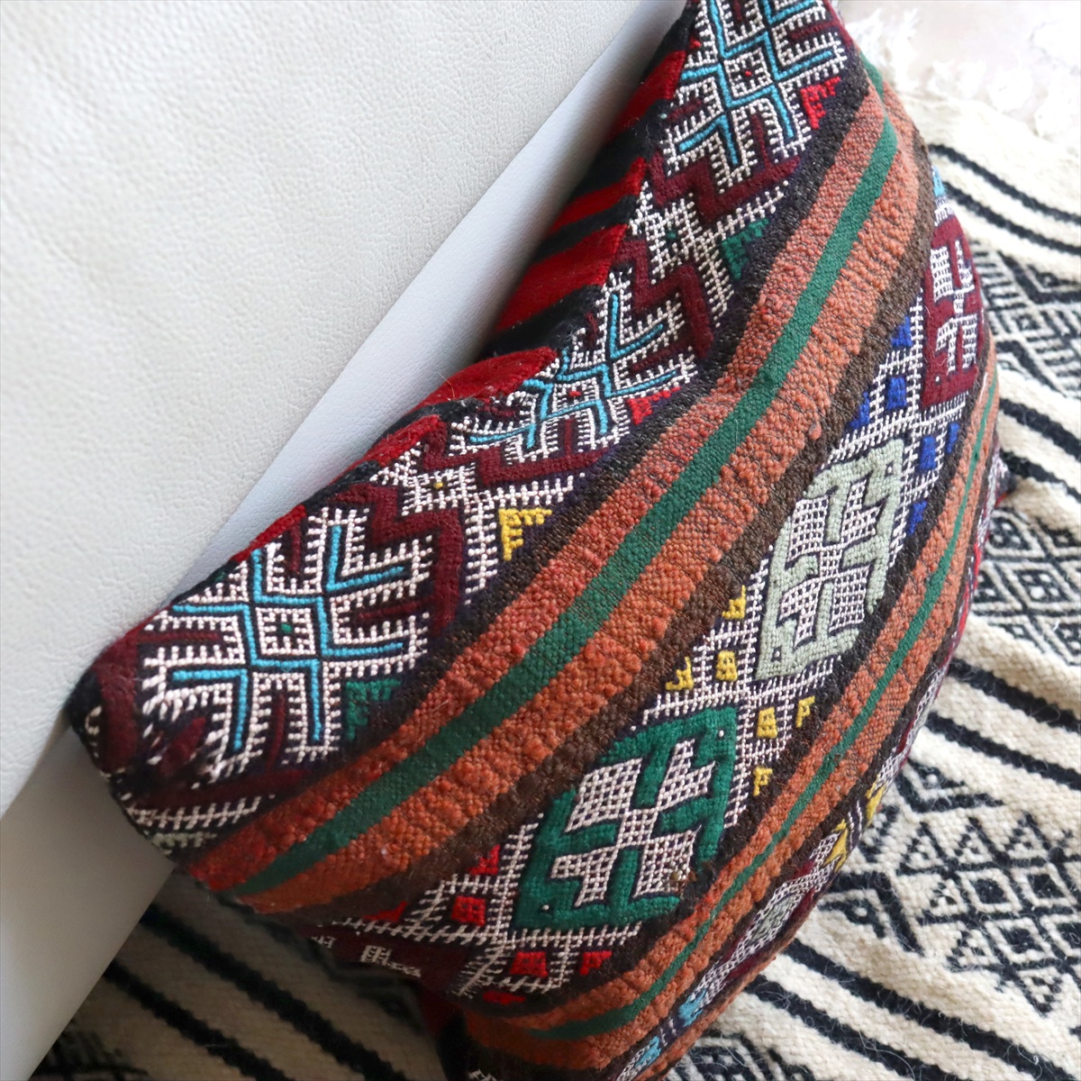 - オールドキリムクッション モロッコ オリジナル41×30cm ベルベル族 ジジム織り ボーダー