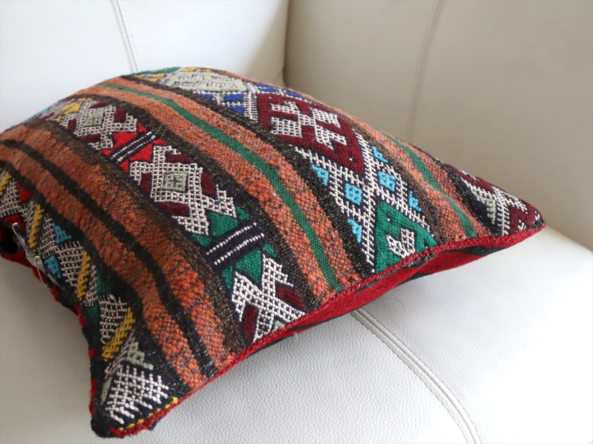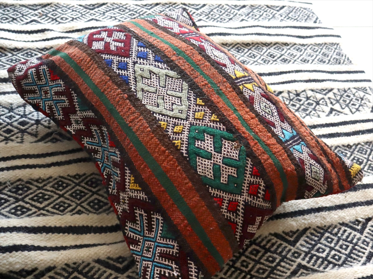 Key:オールドキリムクッションカバー ヴィンテージキリム モロッコ 手織りラグ トライバルラグ 一点もの 現品販売 キリムクッション ピロー 両面 Morocco pillow Cushion Kilim cushion