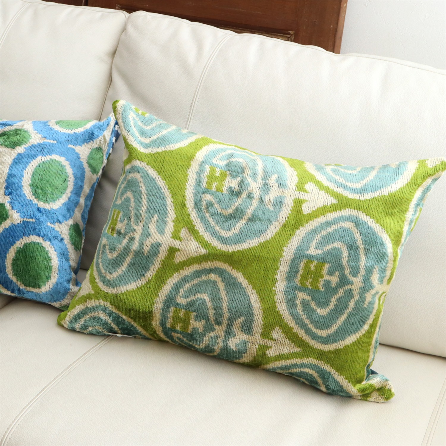 - アトラス ベルベットイカットクッションカバー 両面シルク オスマントルコ柄 カーネーション Silk Velvet Cushion - Double-Sided Design