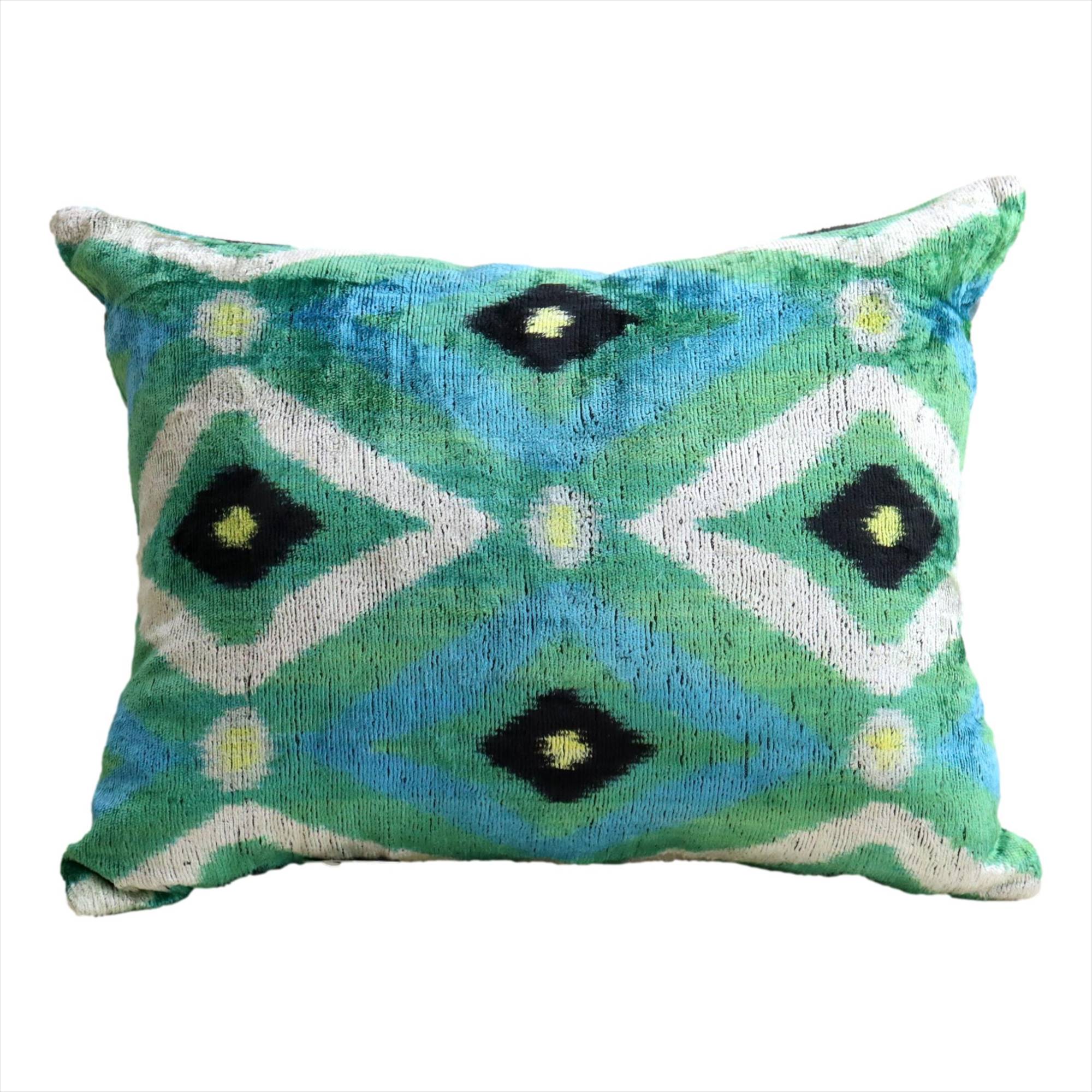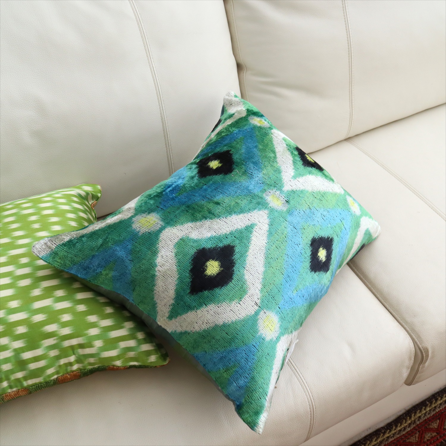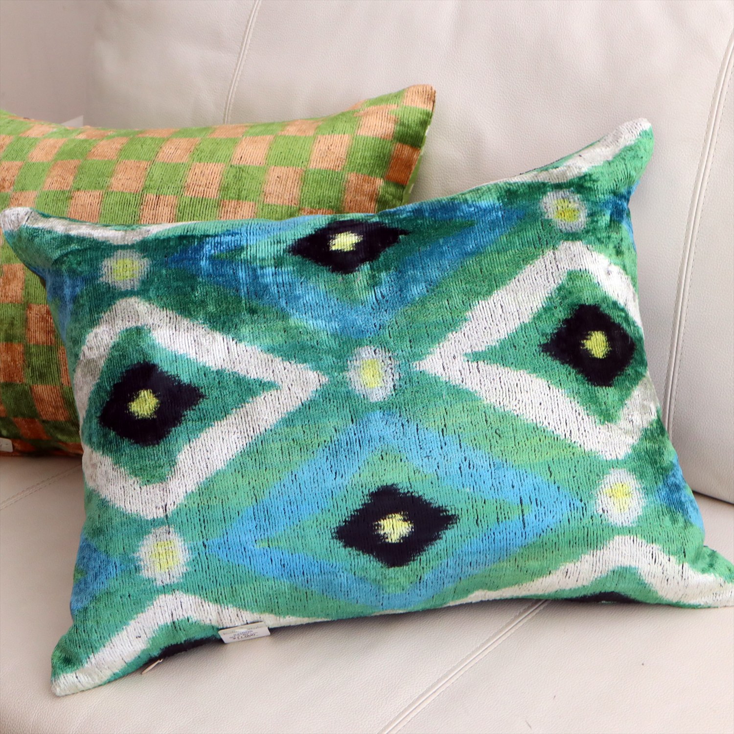 - アトラス ベルベットイカットクッションカバー 両面シルク ミントグリーン ひし形 Silk Velvet Cushion - Double-Sided Design