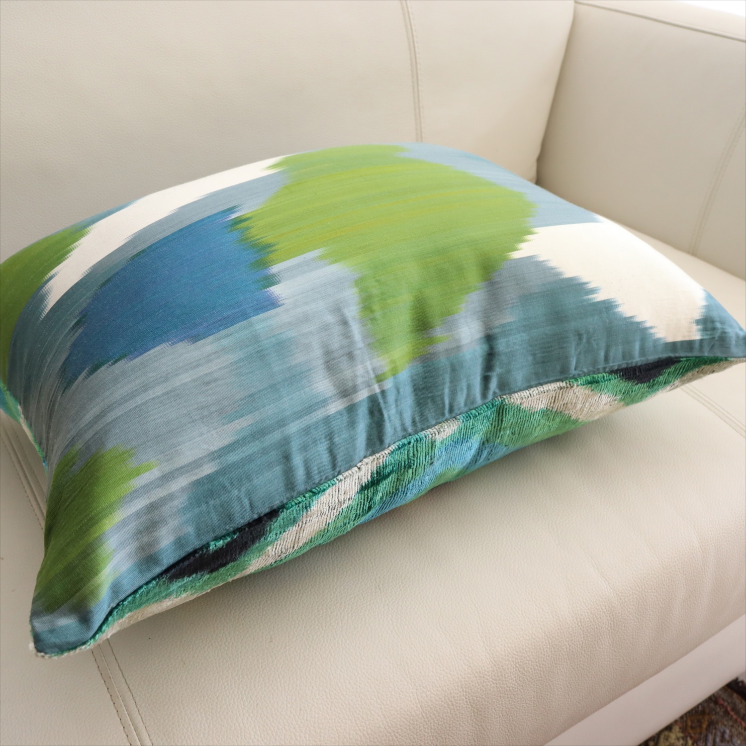 アトラス ベルベットイカットクッションカバー 両面シルク ミントグリーン ひし形 Silk Velvet Cushion - Double-Sided Design