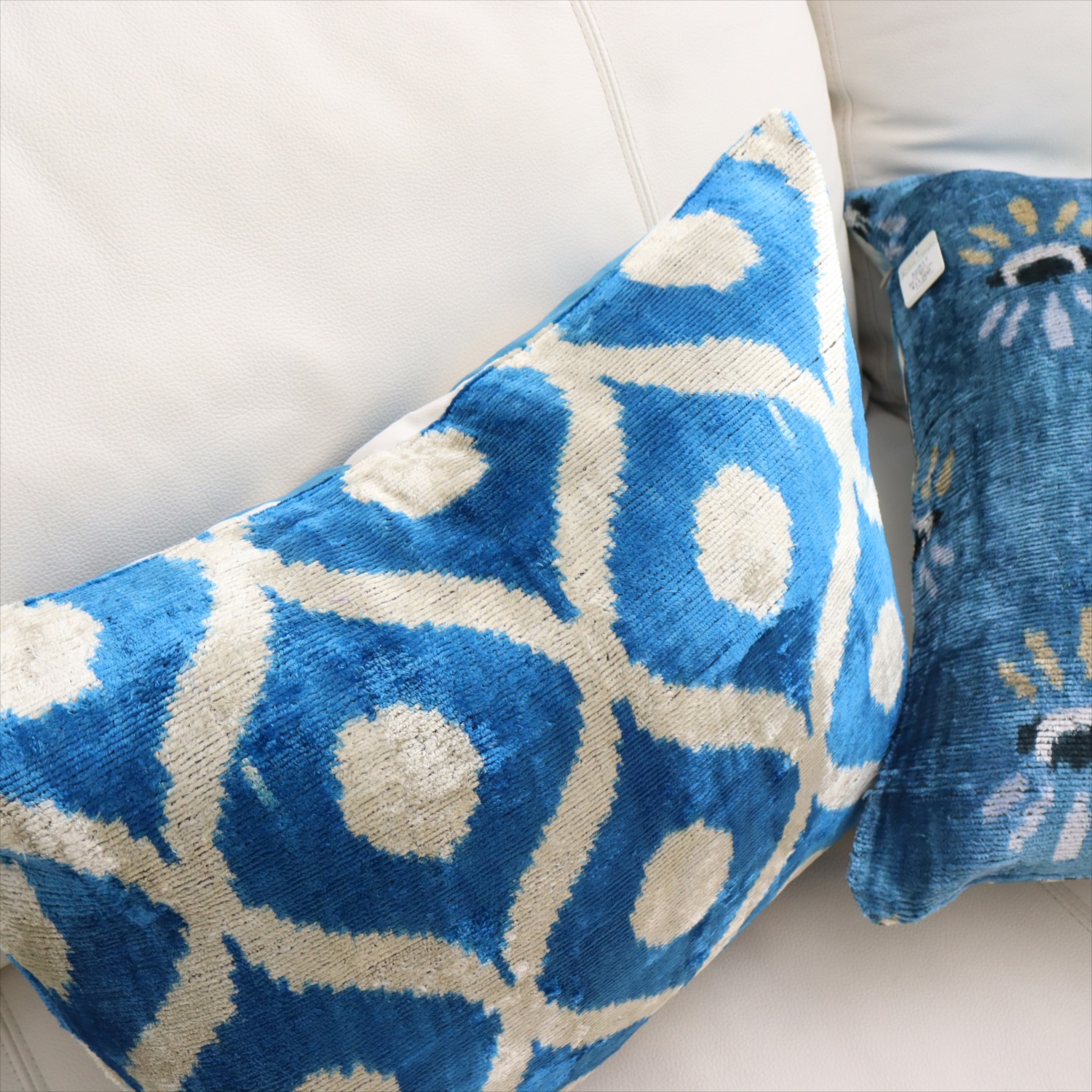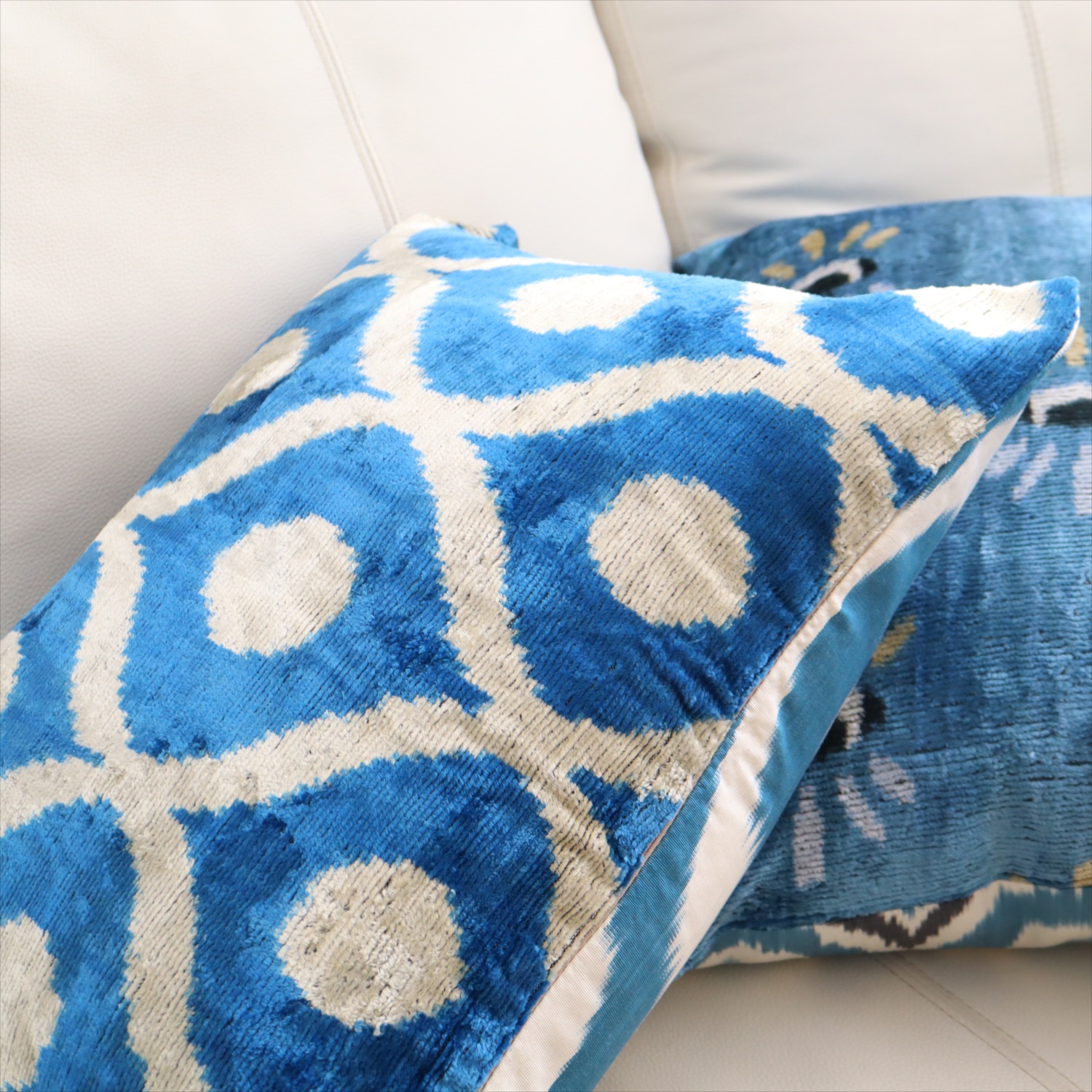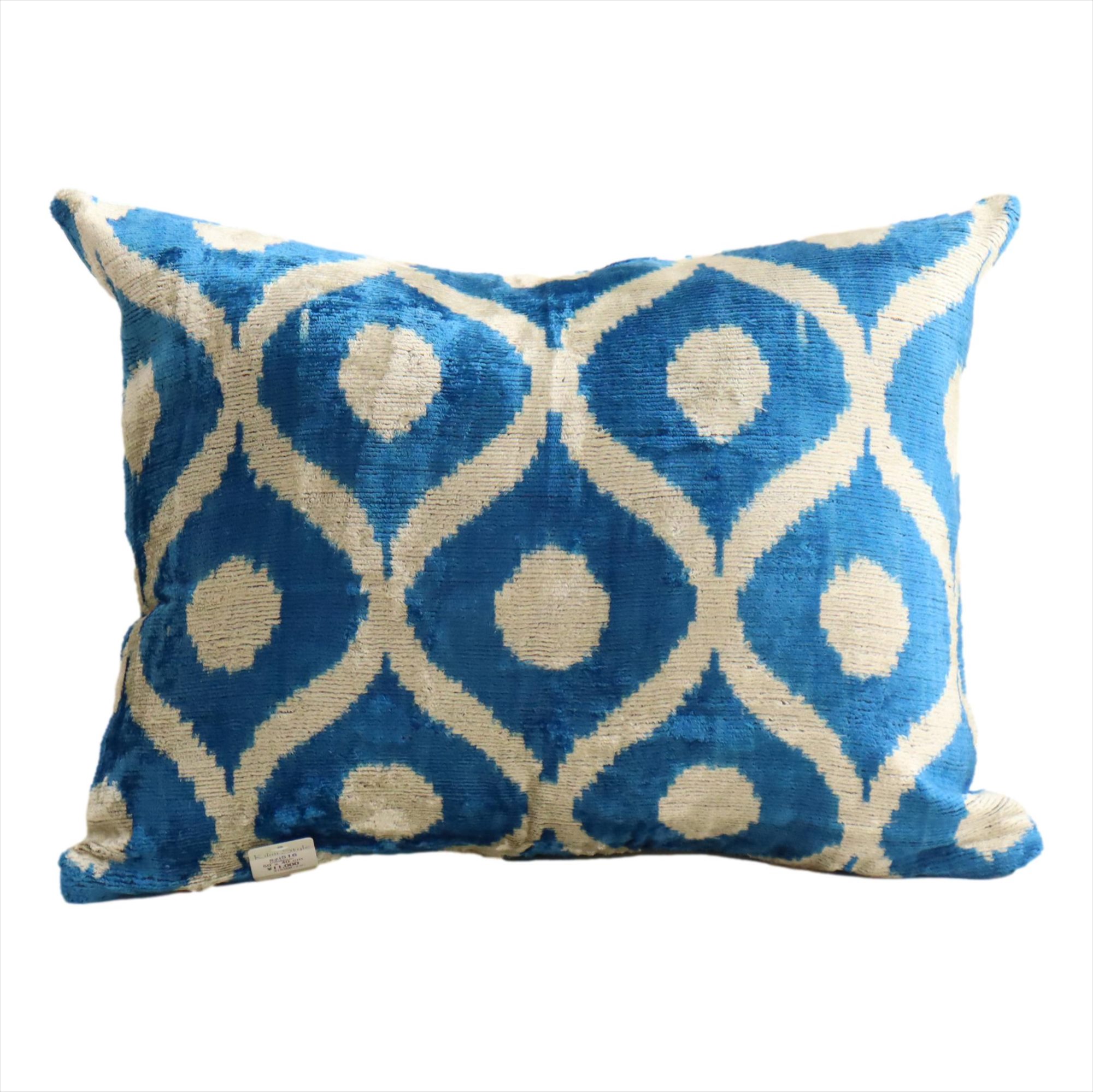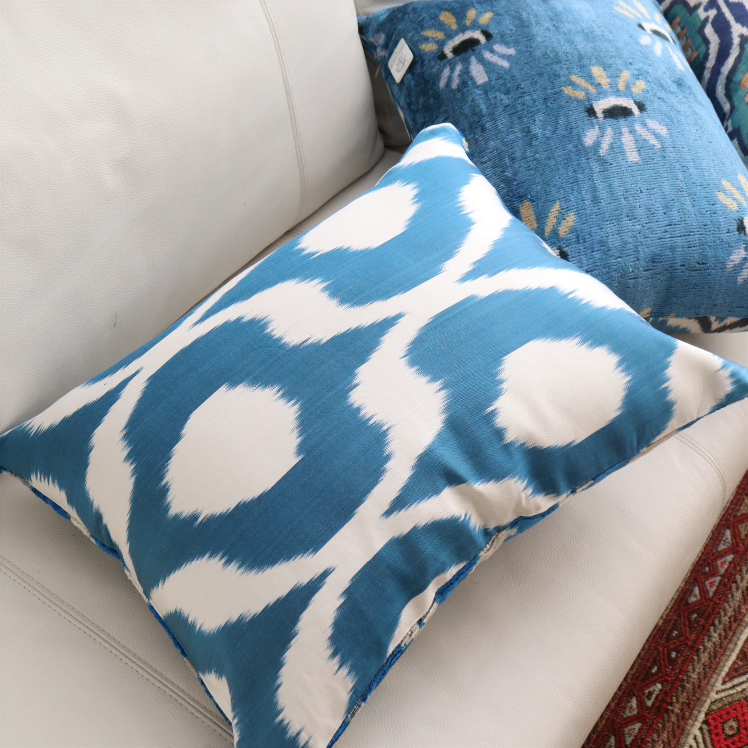 アトラス ベルベットイカットクッションカバー 両面シルク ブルー ランタン柄 Silk Velvet Cushion - Double-Sided Design