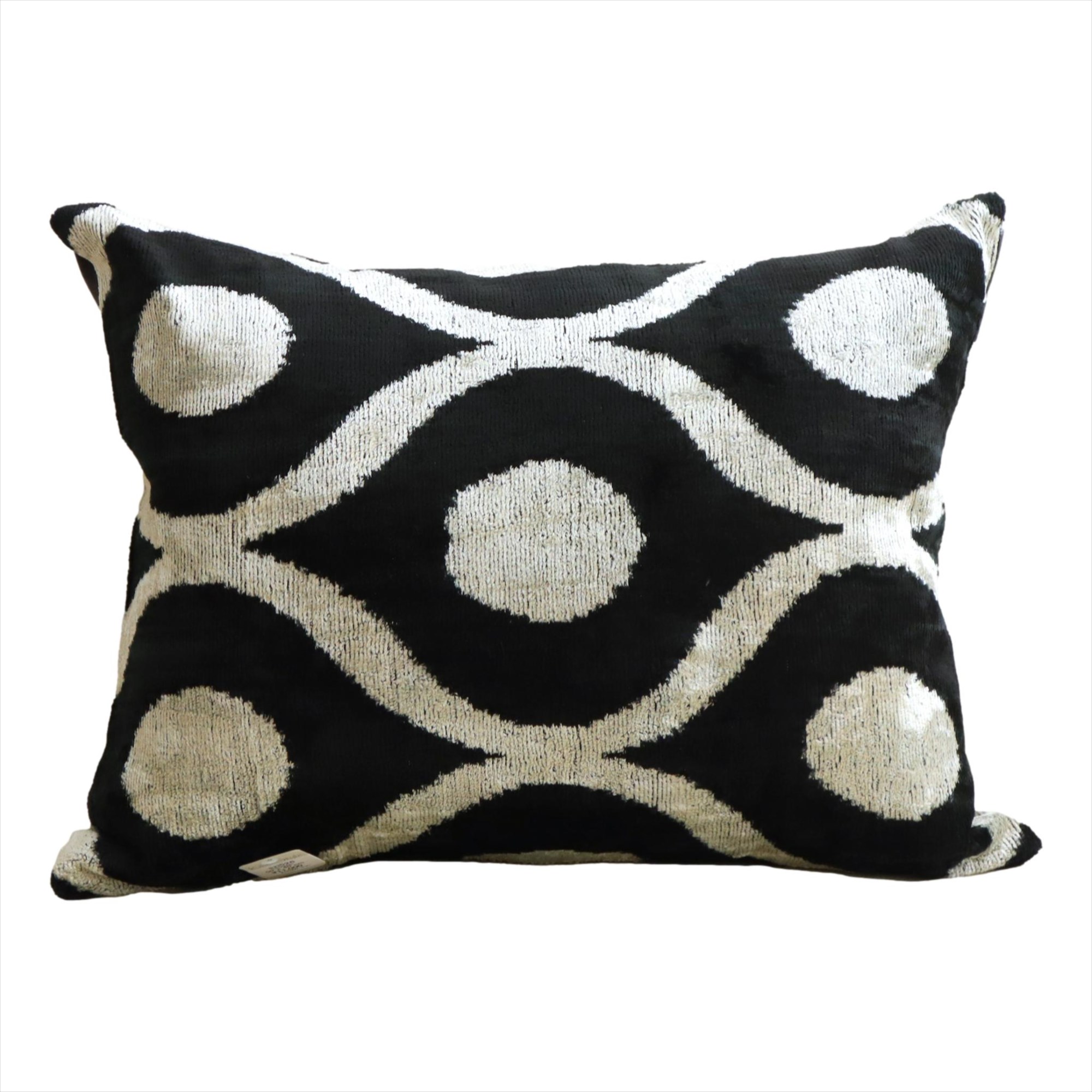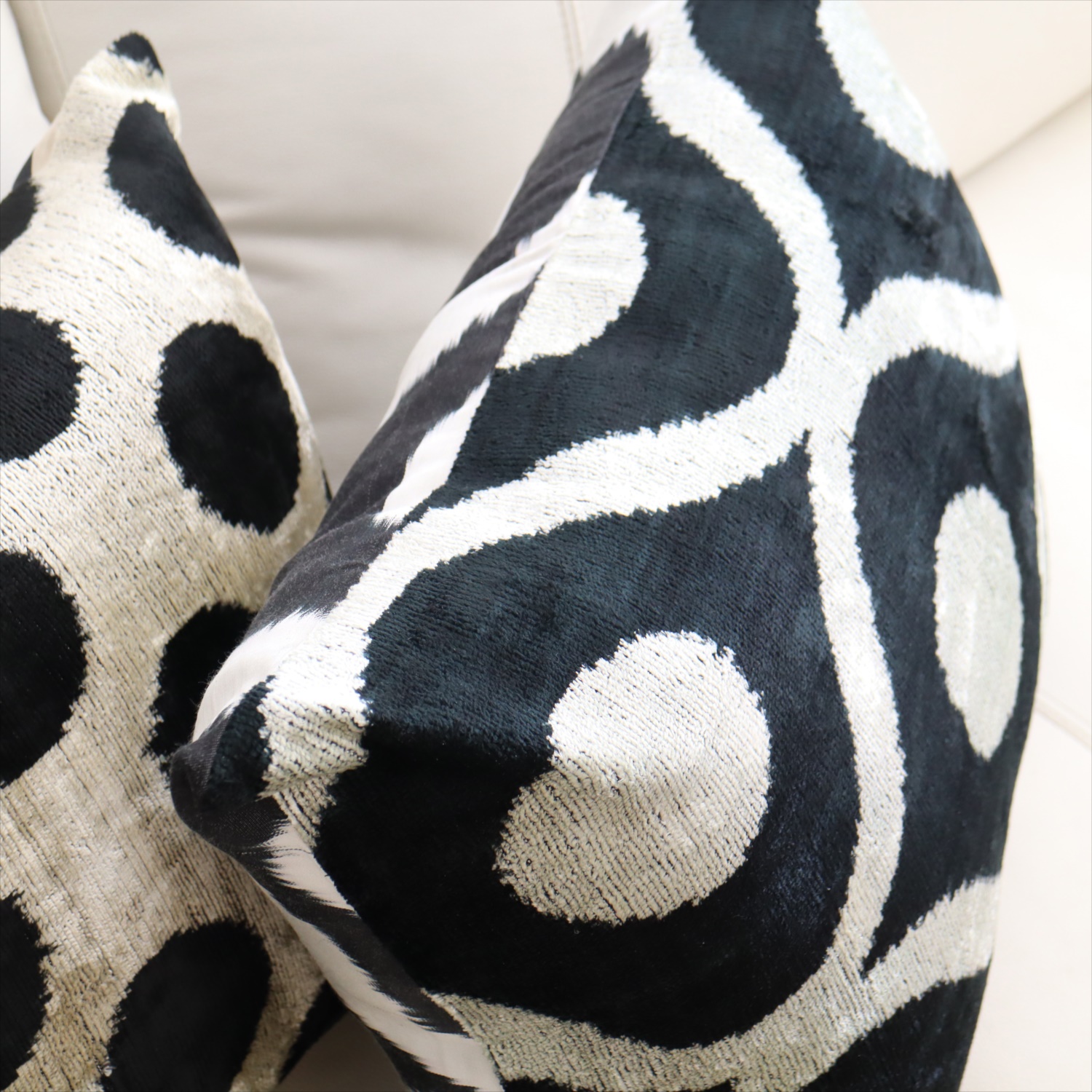 - アトラス ベルベットイカットクッションカバー 両面シルク ブラック ランタン柄 Silk Velvet Cushion - Double-Sided Design