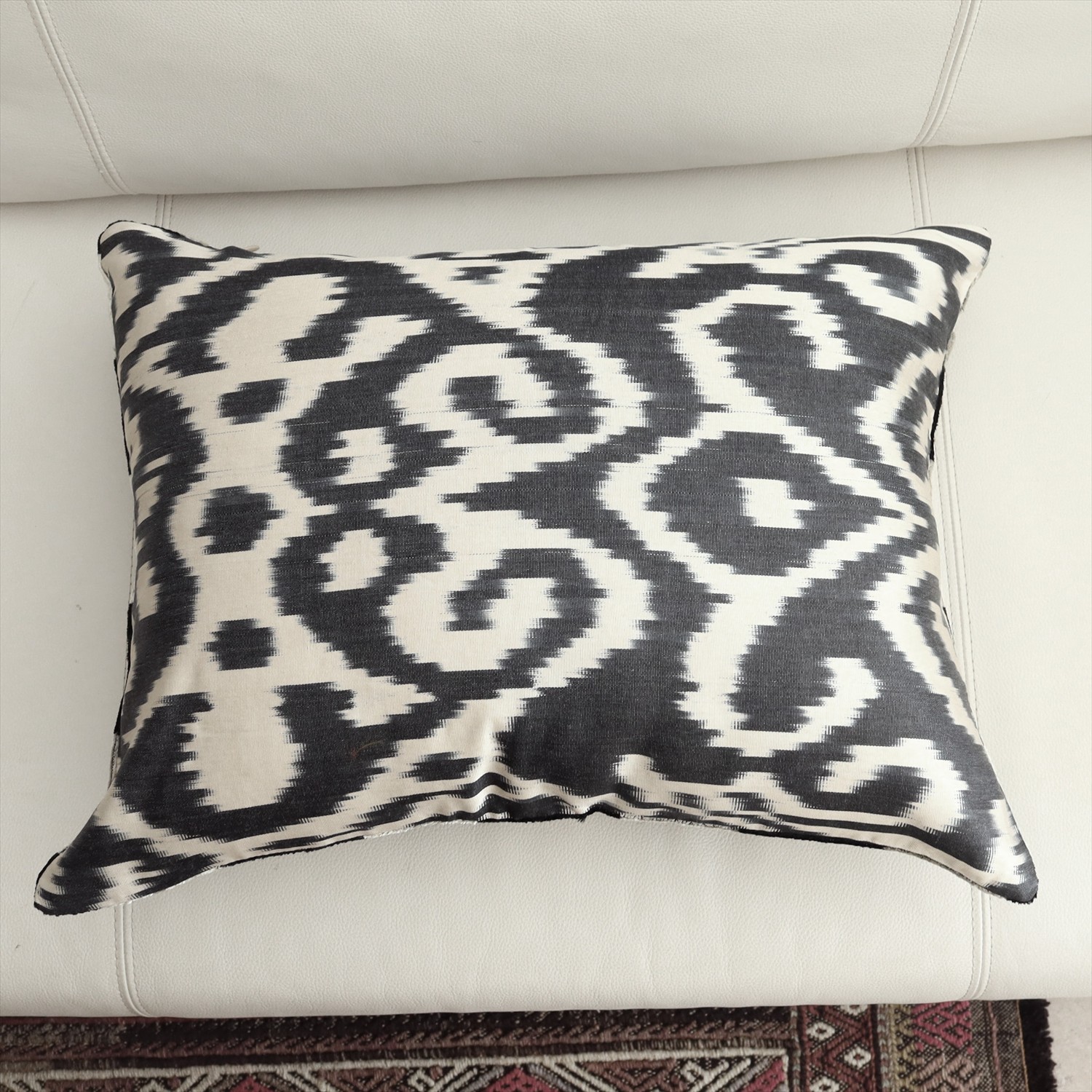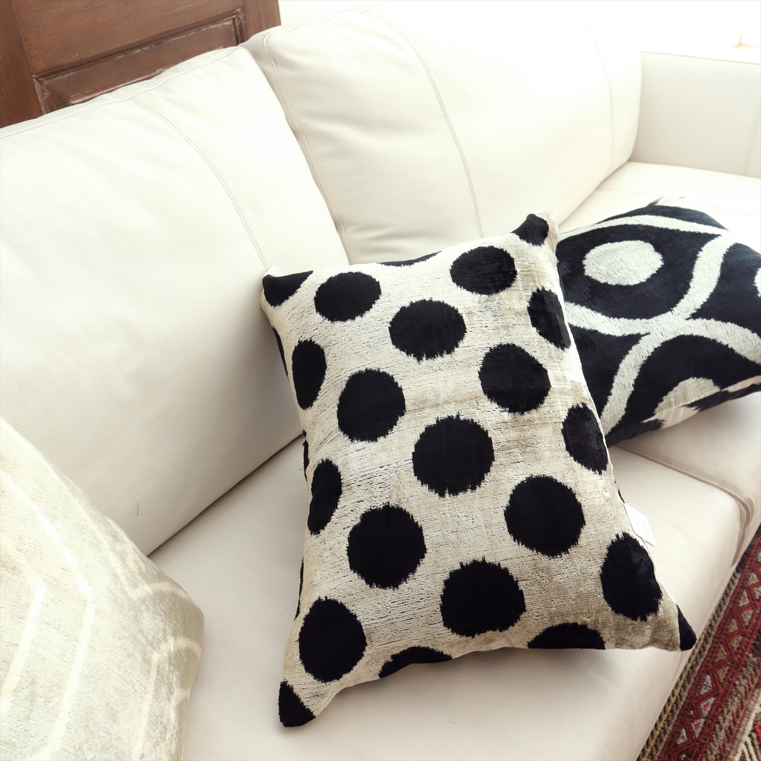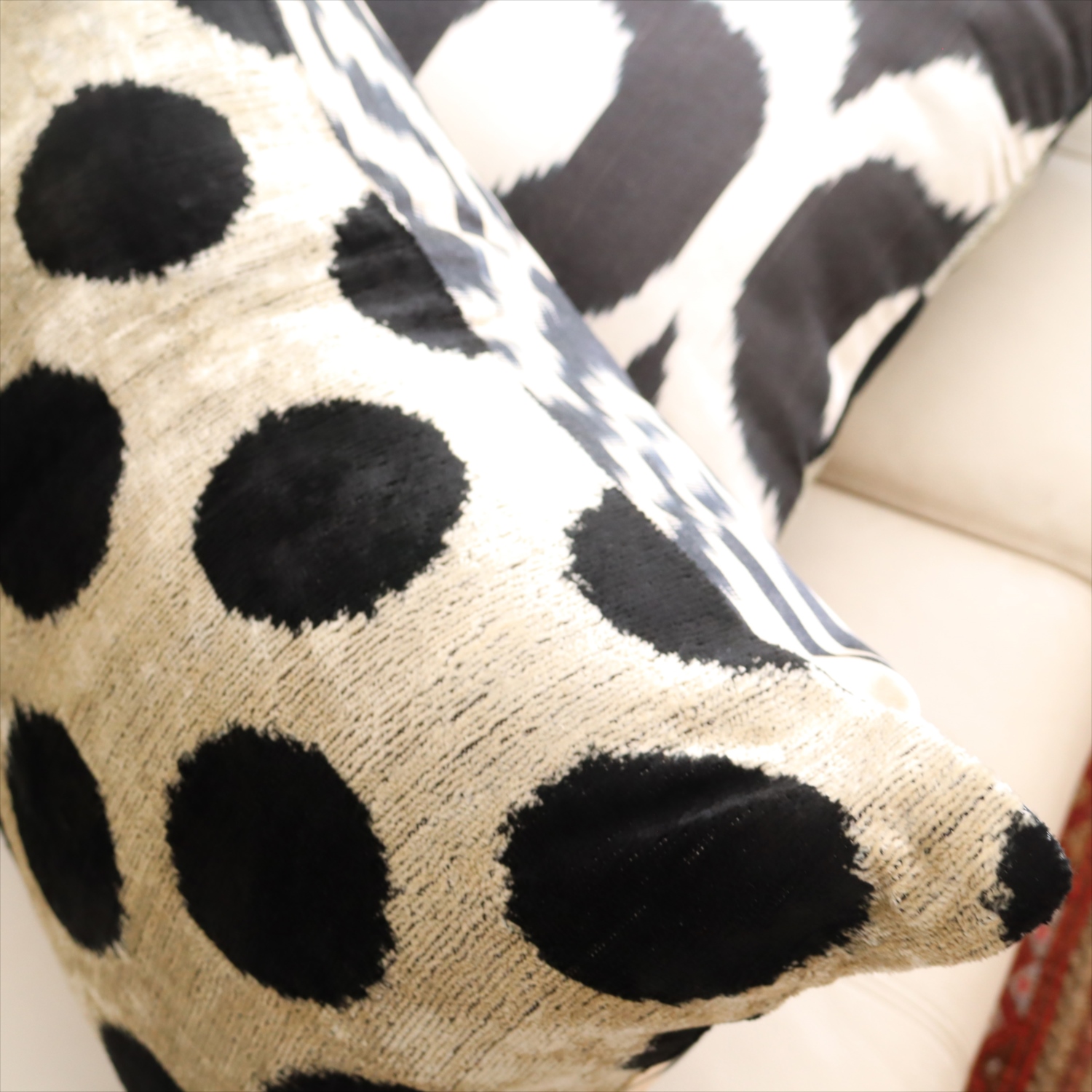 - アトラス ベルベットイカットクッションカバー 両面シルク 水玉 ドット ブラック Silk Velvet Cushion - Double-Sided Design