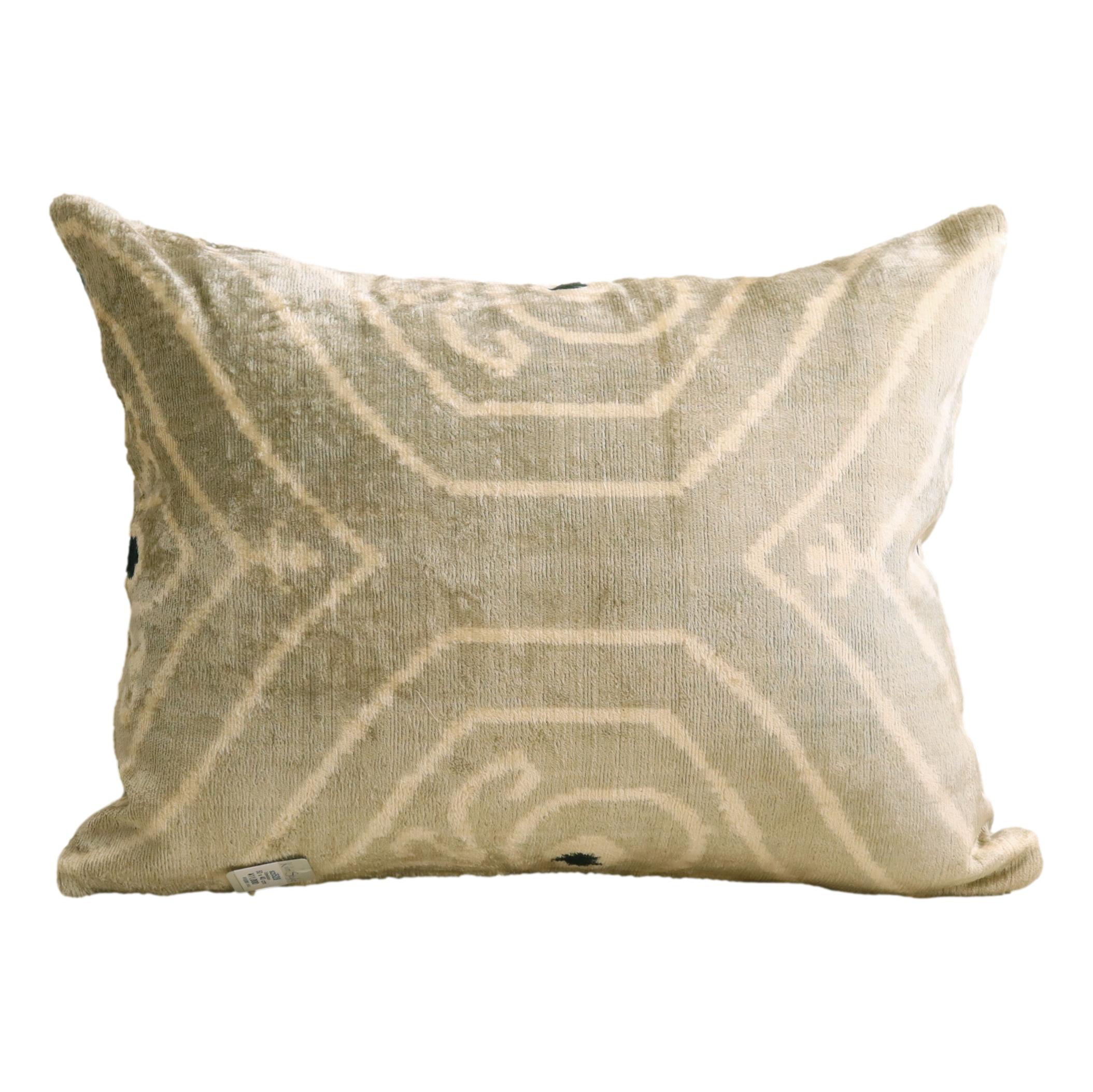 - アトラス ベルベットイカットクッションカバー 両面シルク ライトグレー タイル柄 Silk Velvet Cushion - Double-Sided Design