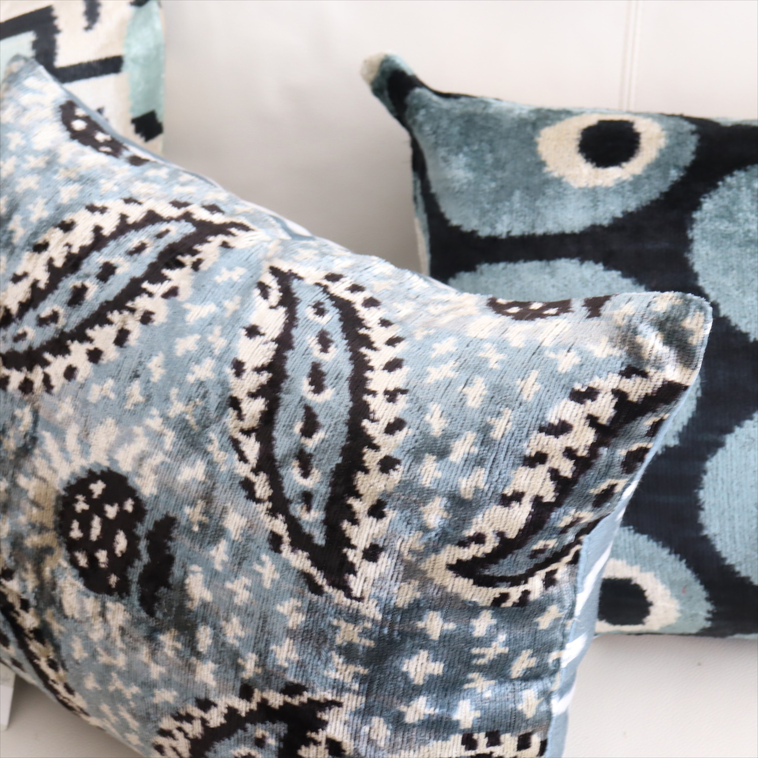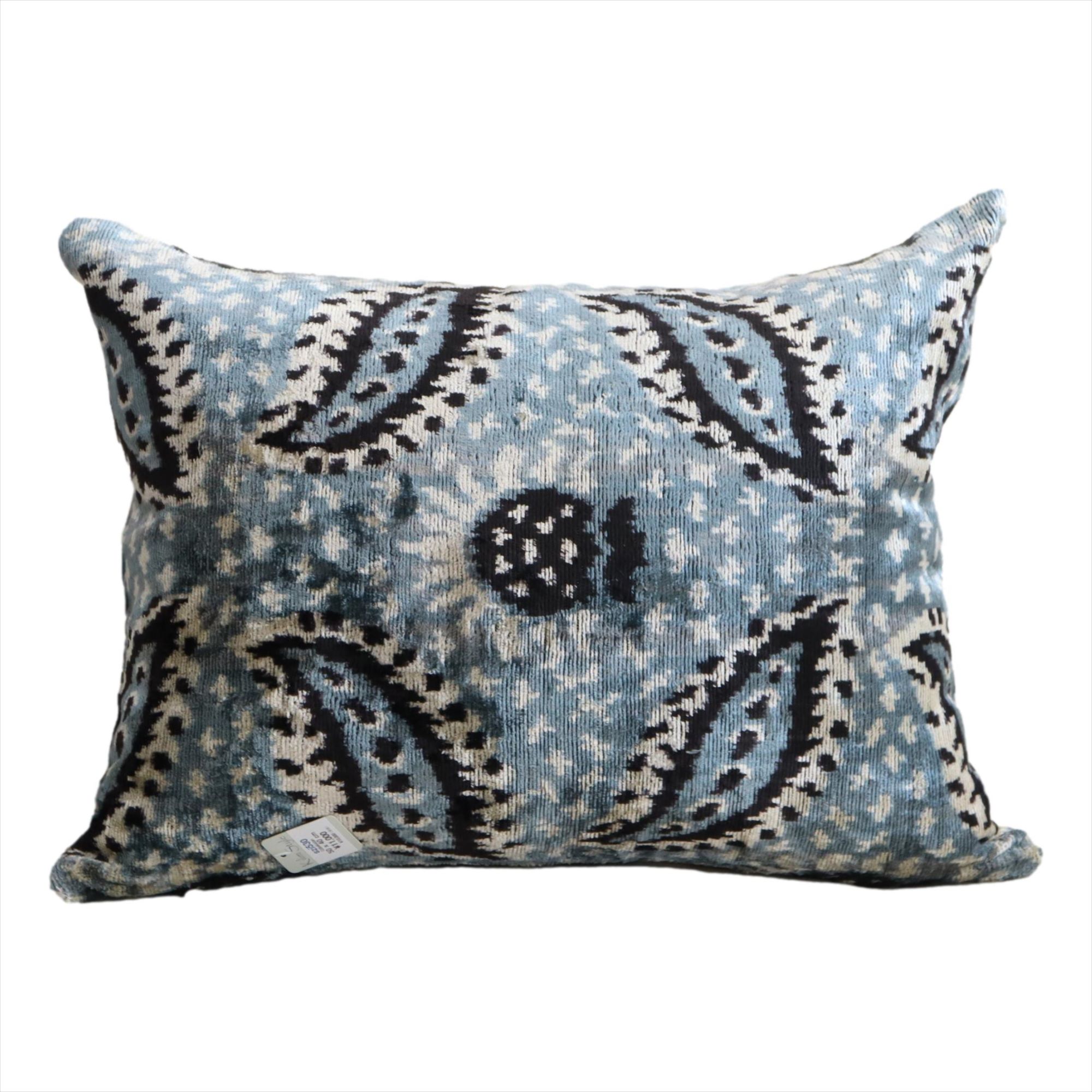 - アトラス ベルベットイカットクッションカバー 両面シルク ペイズリー グレー Silk Velvet Cushion - Double-Sided Design