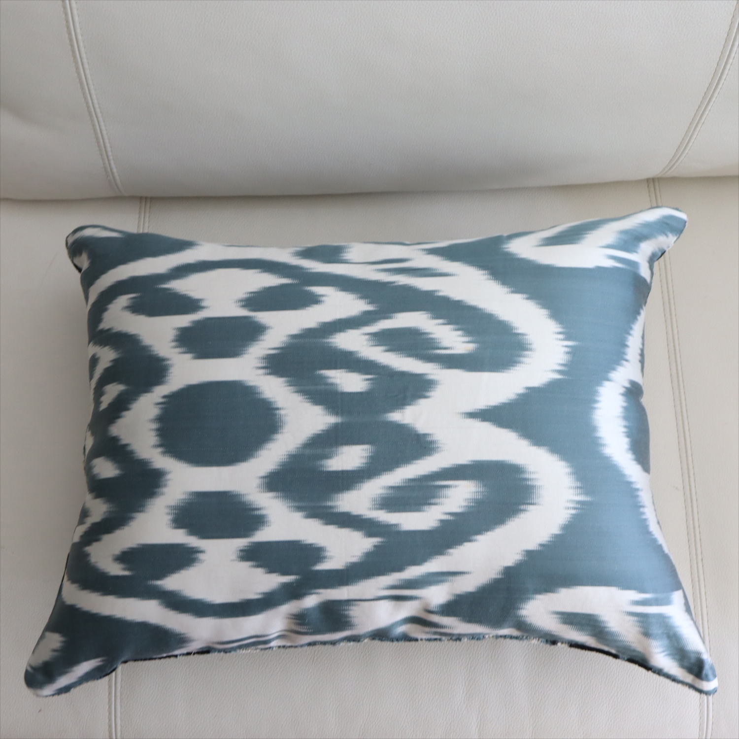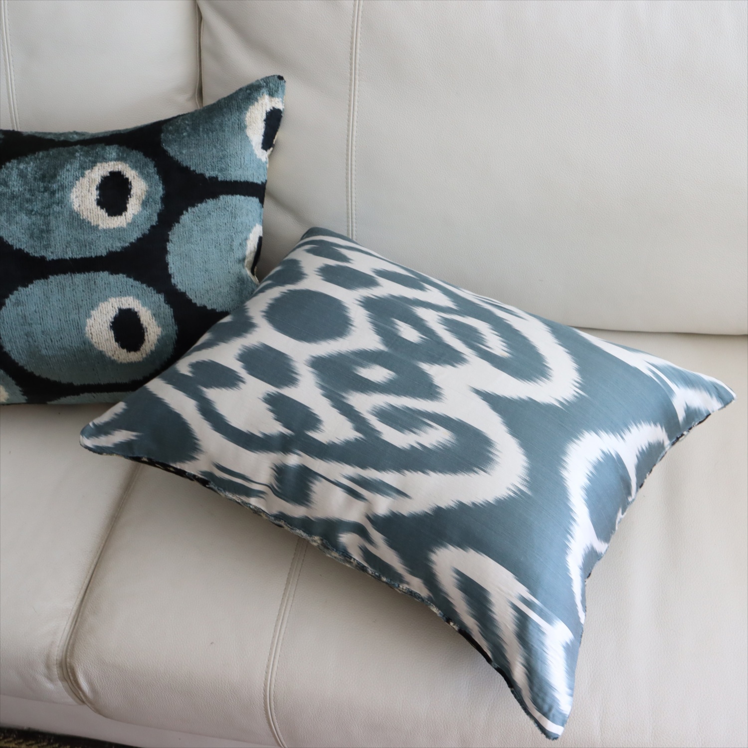 アトラス ベルベットイカットクッションカバー 両面シルク ペイズリー グレー Silk Velvet Cushion - Double-Sided Design