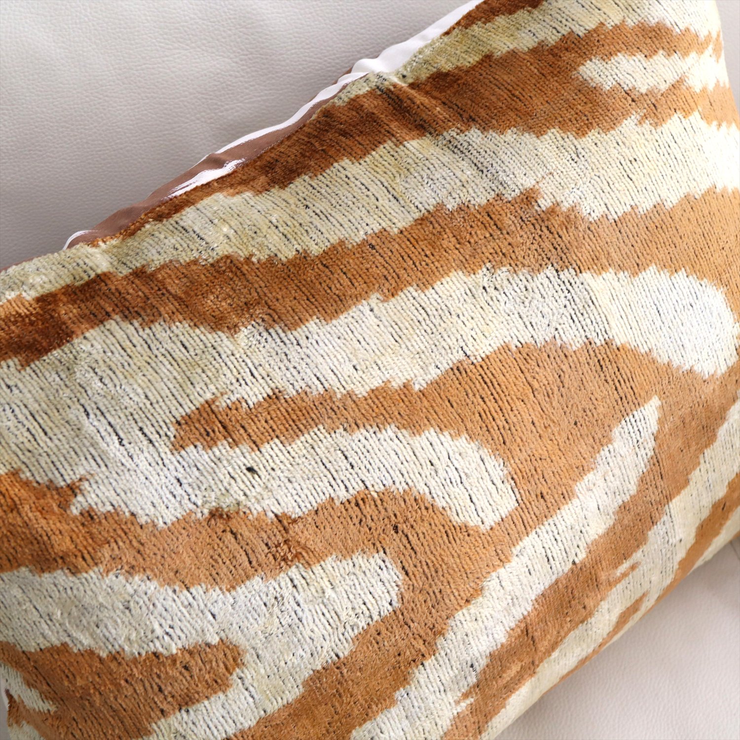 - アトラス ベルベットイカットクッションカバー 両面シルク ゼブラ柄 ブラウン Silk Velvet Cushion - Double-Sided Design