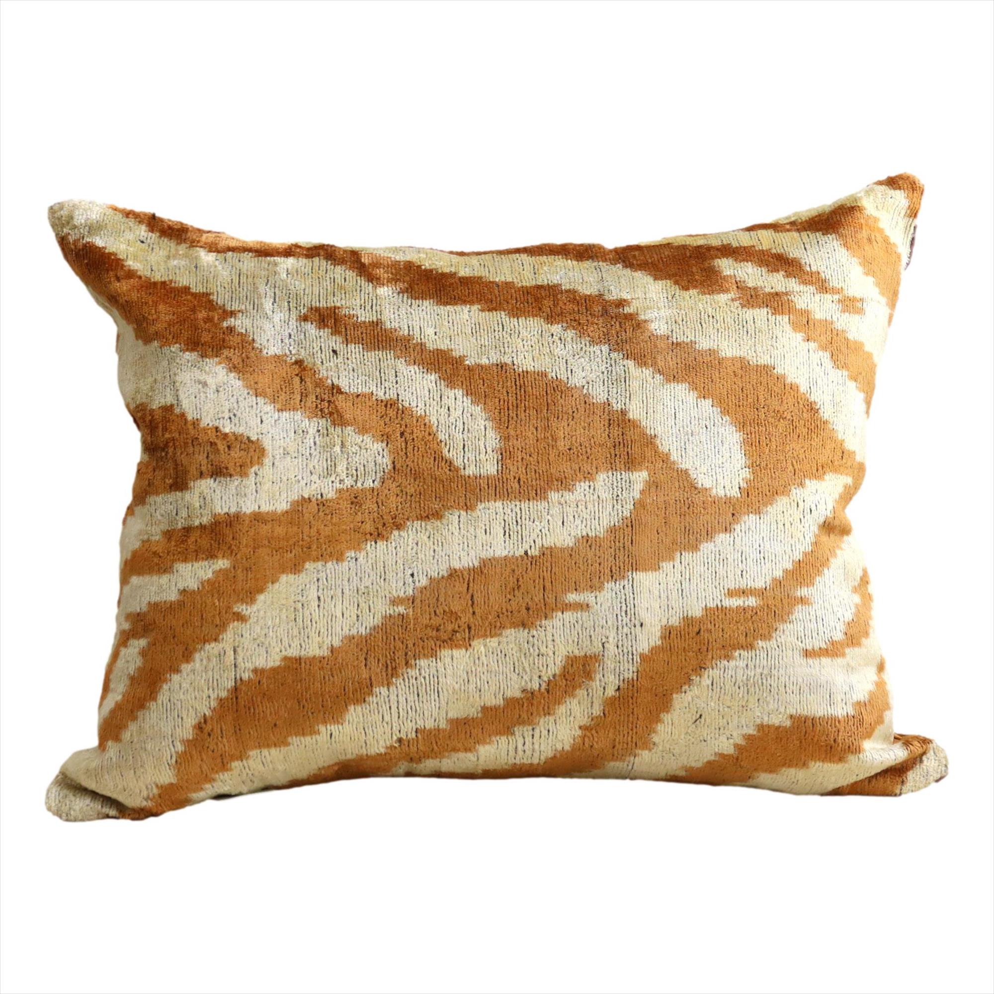 アトラス ベルベットイカットクッションカバー 両面シルク ゼブラ柄 ブラウン Silk Velvet Cushion - Double-Sided Design