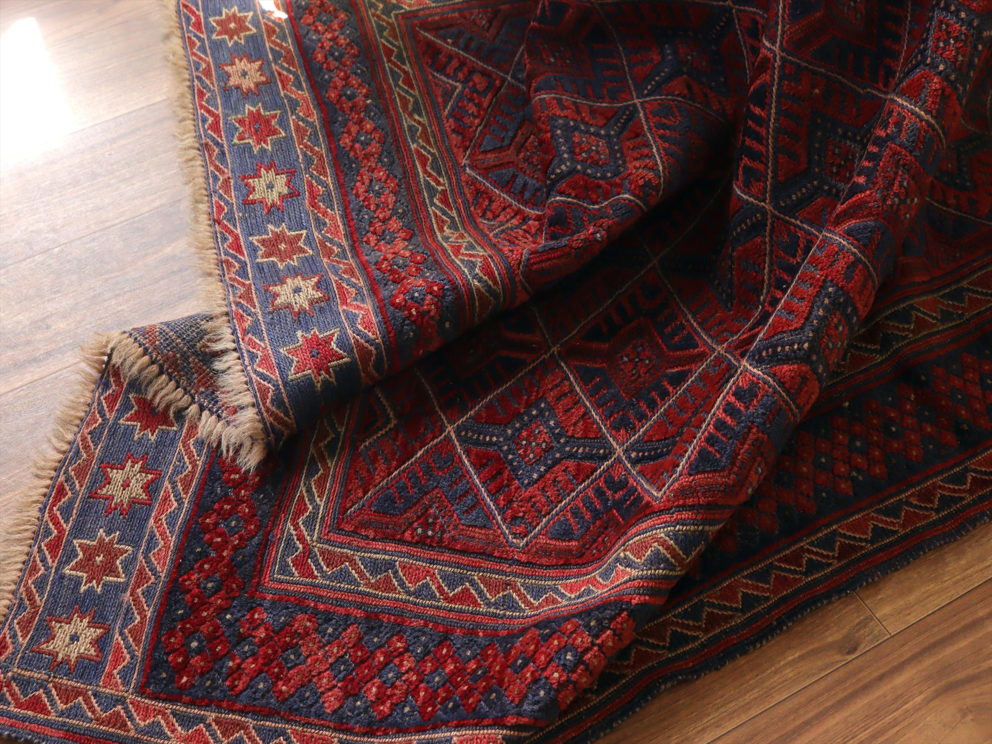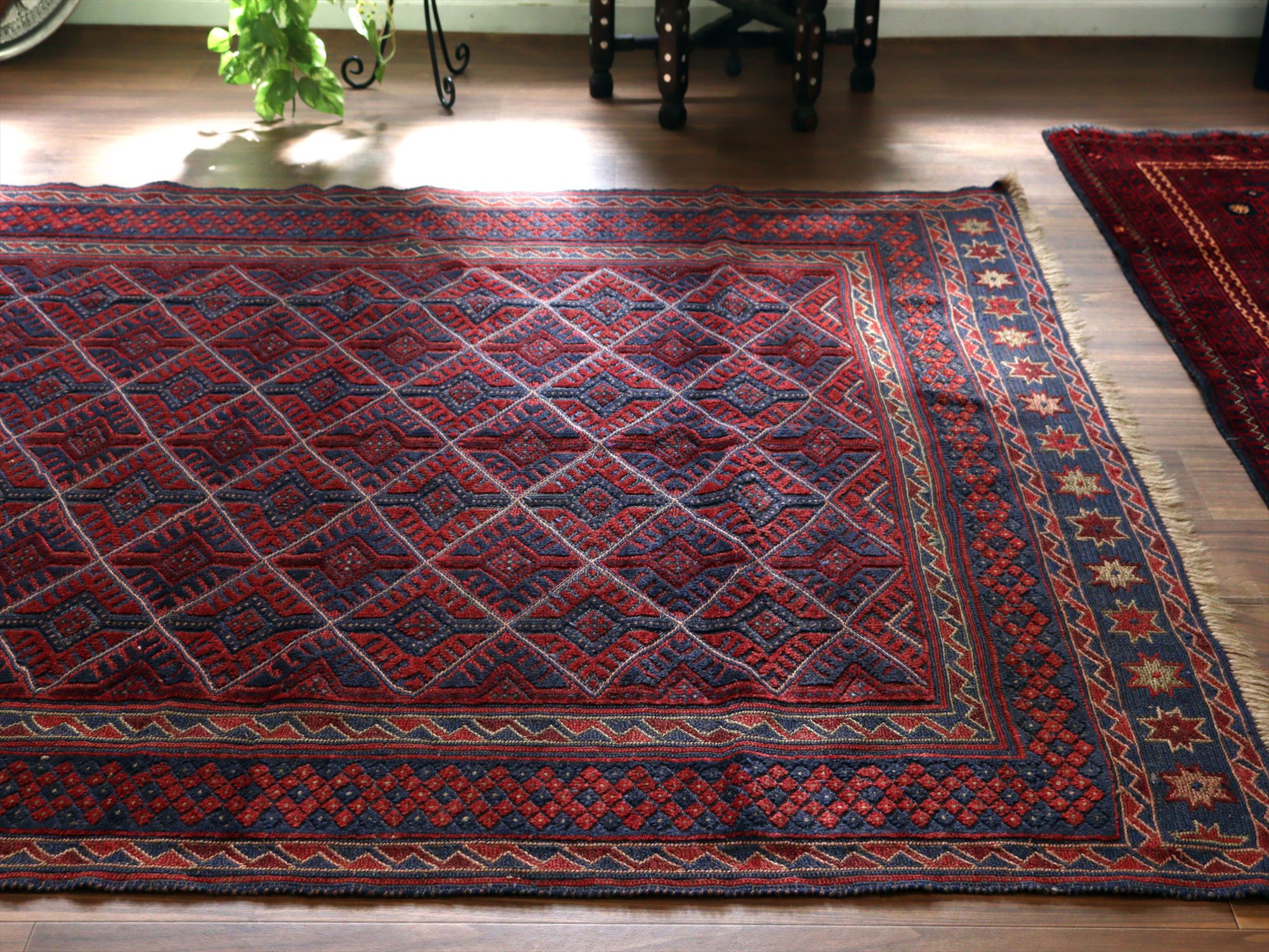 - オールドキリム アフガニスタン ミシュワニ194×149cm 連なる幾何学模様