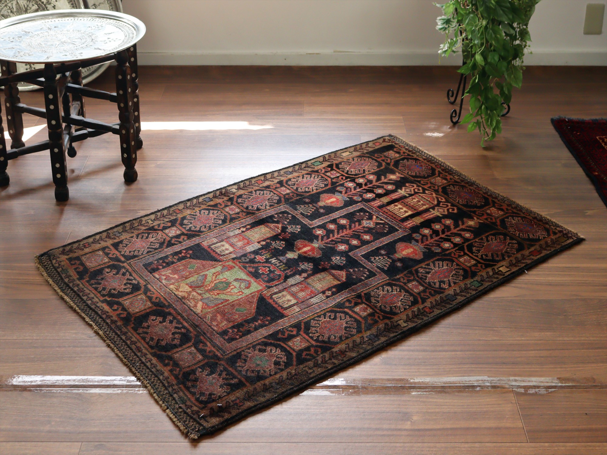 - トライバルラグ バルーチ121×82cm ミフラープ ブラック