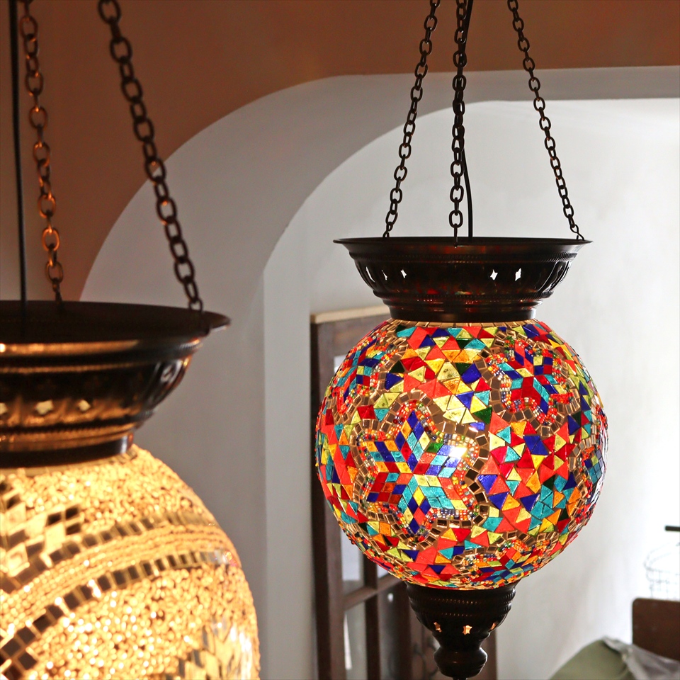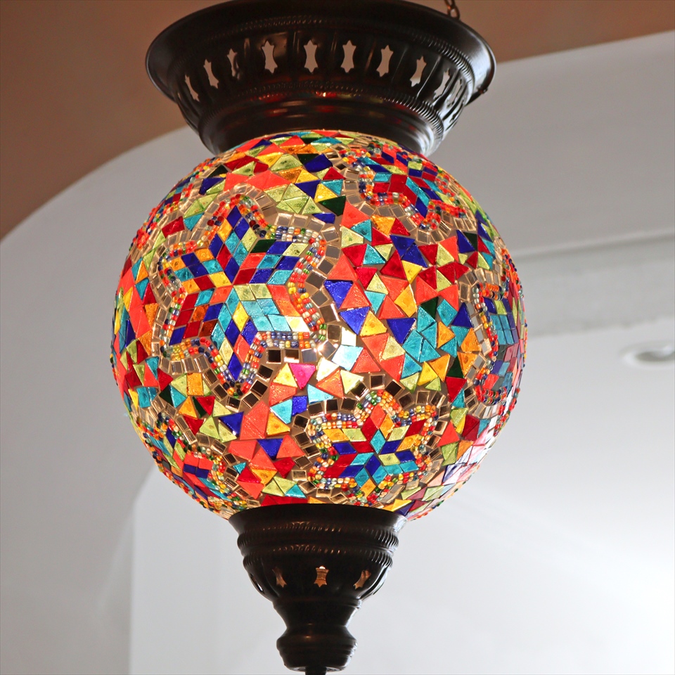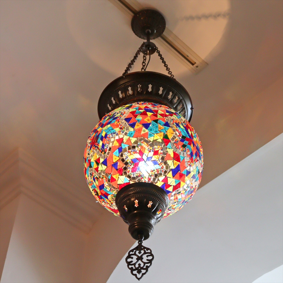 Key:トルコランプ モザイクランプ 天井照明 吹き抜け用照明 パレスランプ 大型 ガラスシェード ペンダントライト シーリングライト ランプ ライト 照明 インテリア エスニック オリエンタル 引っ掛けシーリング対応