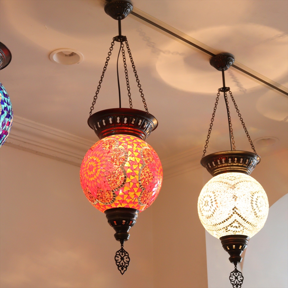 Key:トルコランプ モザイクランプ 天井照明 吹き抜け用照明 パレスランプ 大型 ガラスシェード ペンダントライト シーリングライト ランプ ライト 照明 インテリア エスニック オリエンタル 引っ掛けシーリング対応