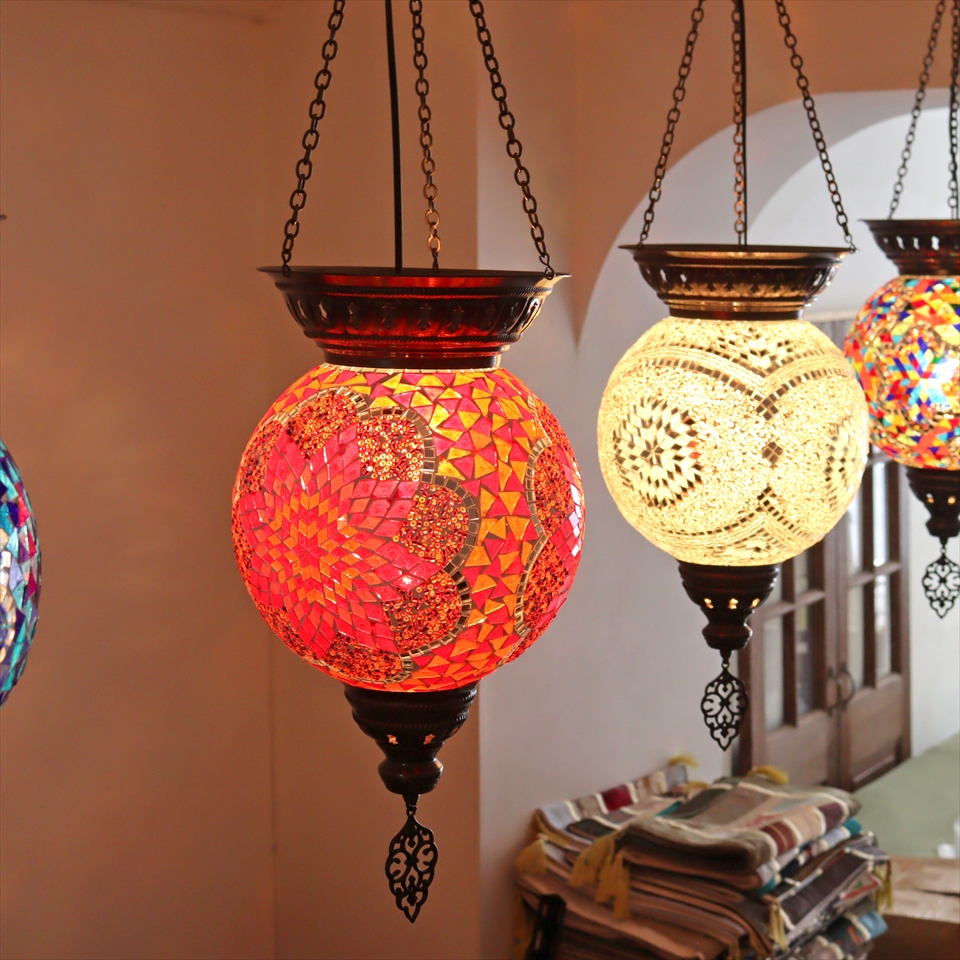 ボンヤリとした灯りがエスニックムード漂う、トルコのモザイクガラスランプです。