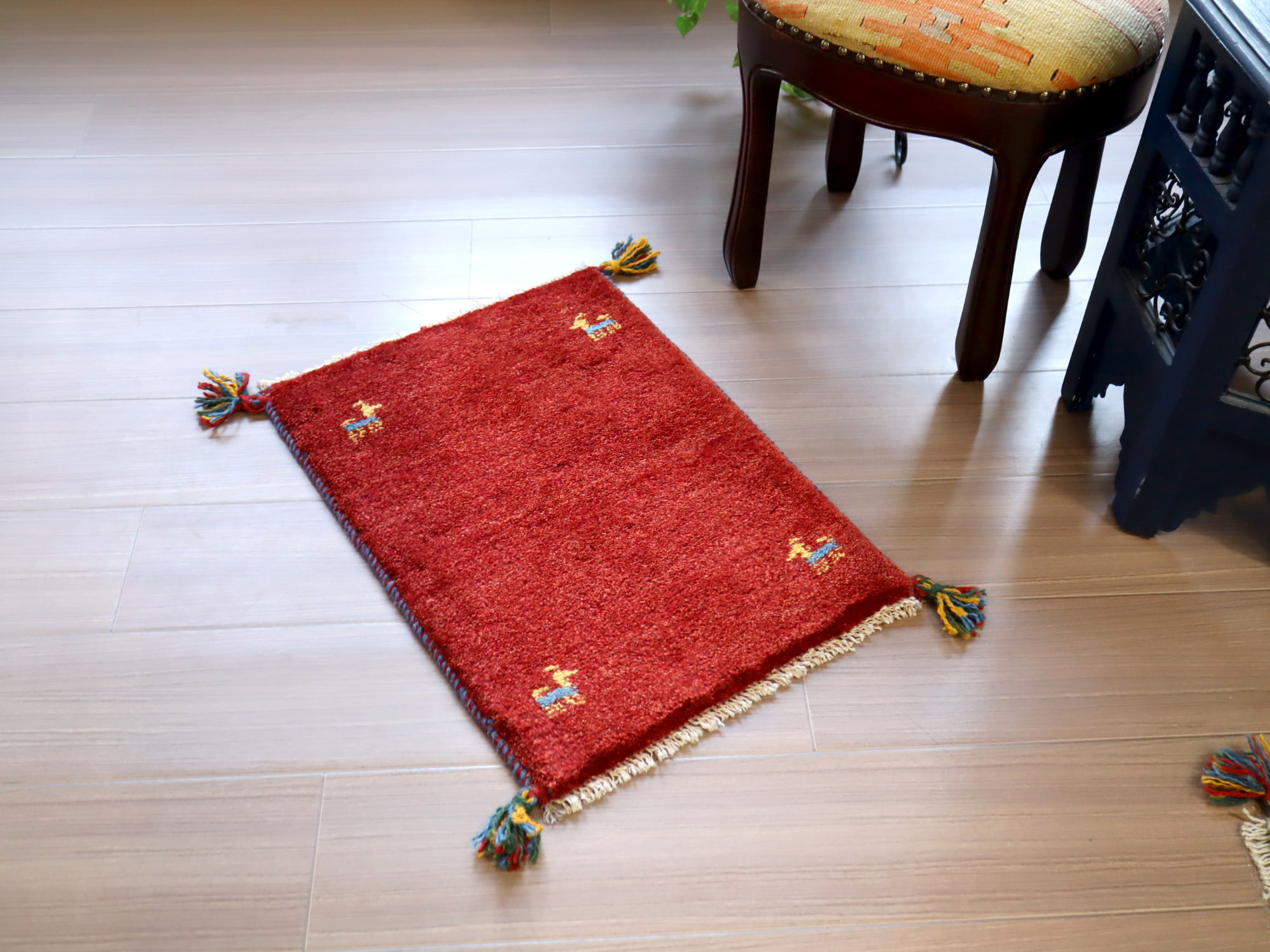 - ギャッベ 手織り イラン産 56x40cm レッド 赤 シンプル 無地