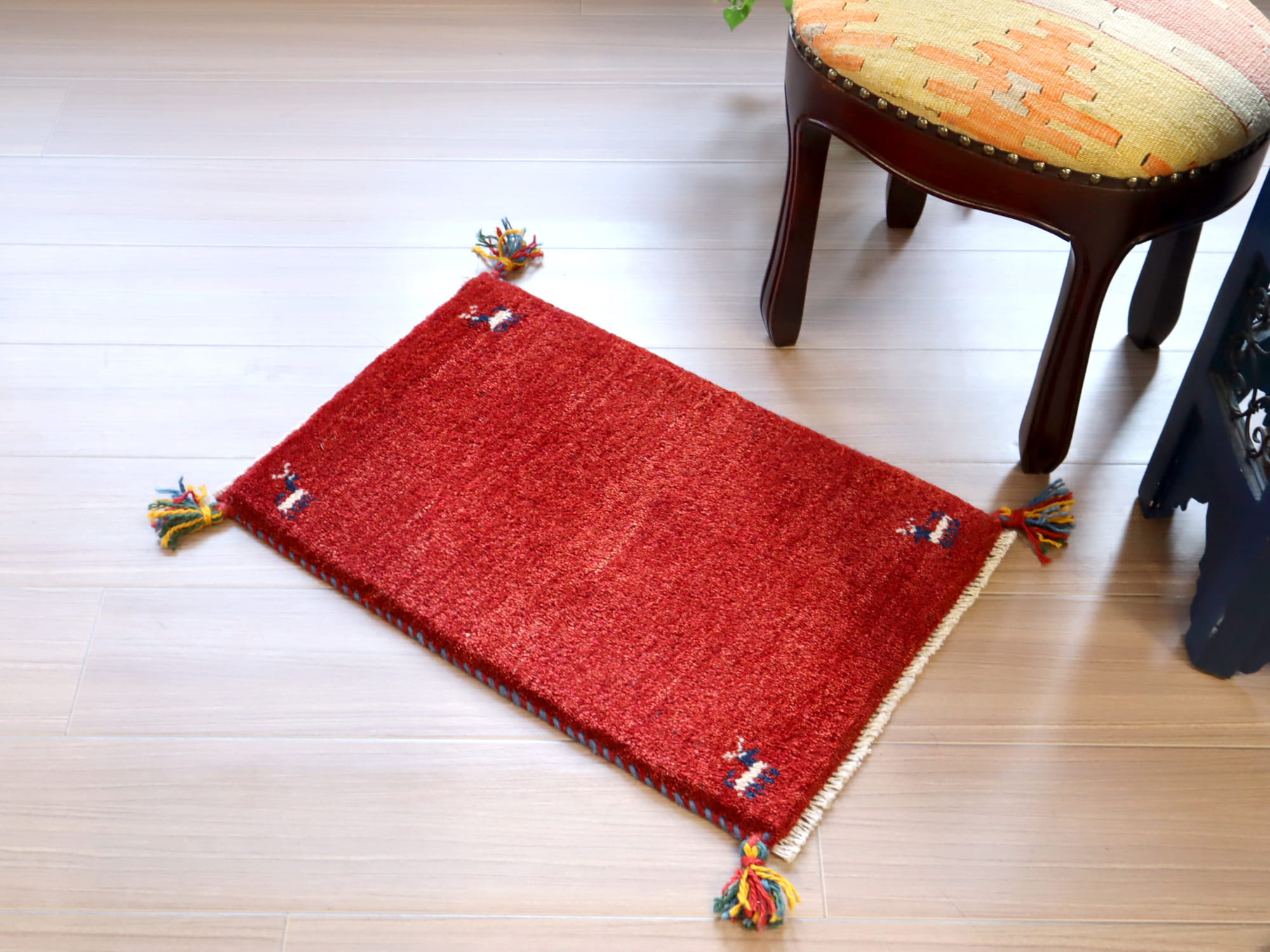 - ギャッベ 手織り イラン産 60x40cm レッド 赤 シンプル 無地