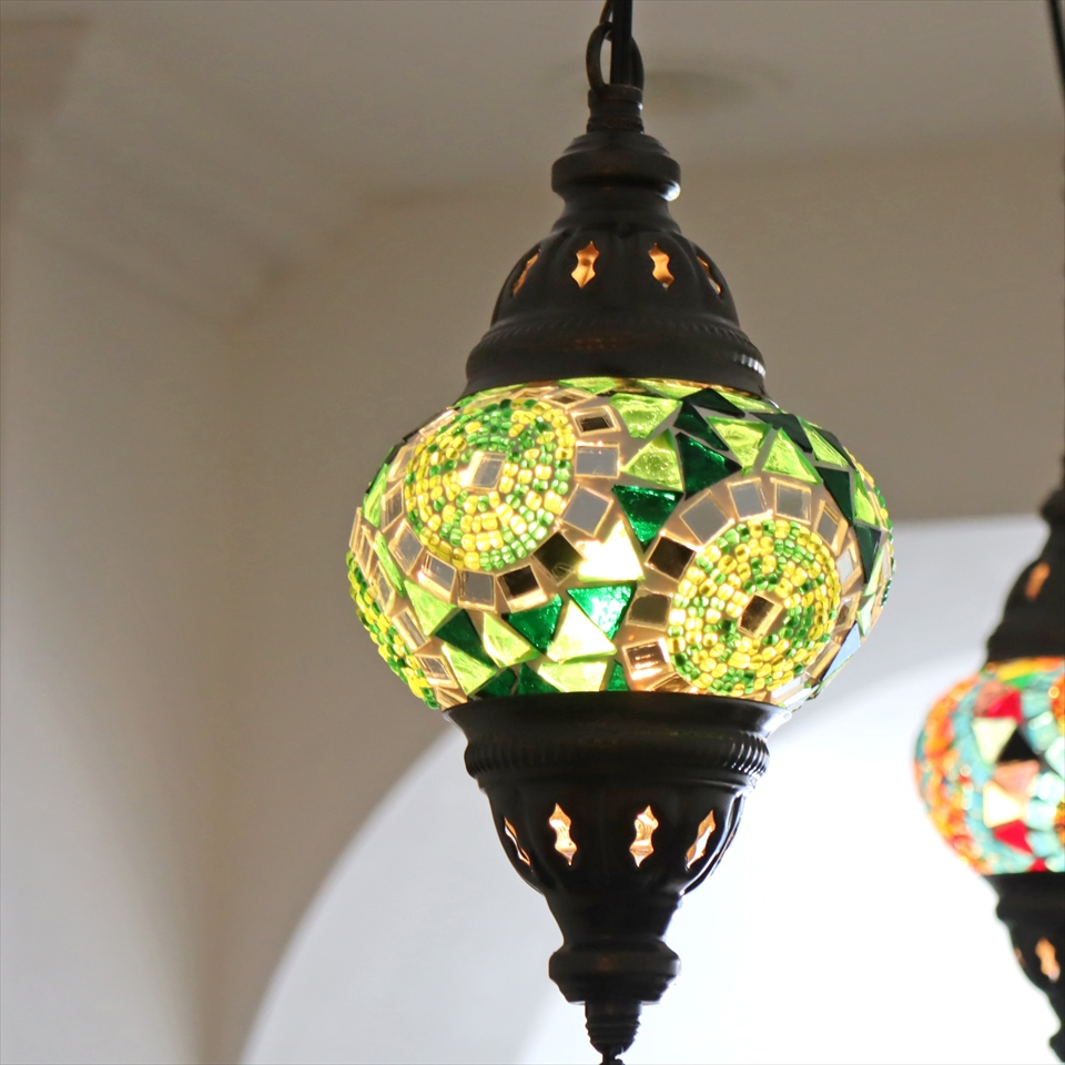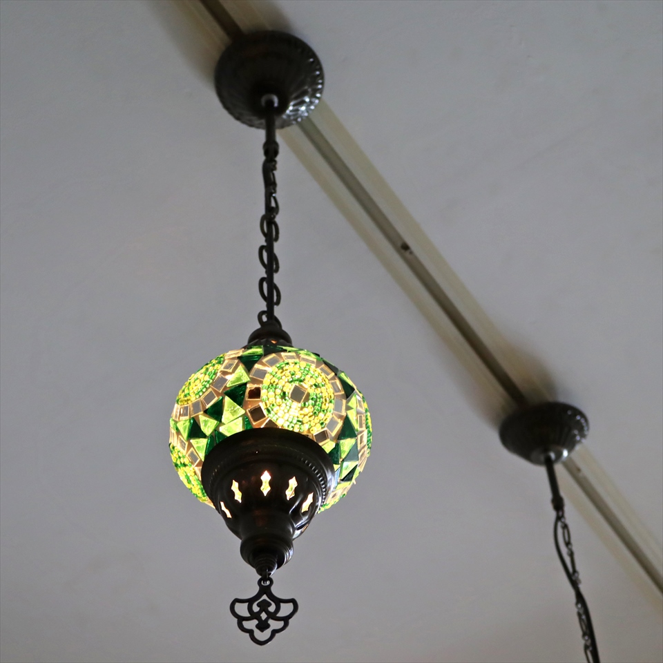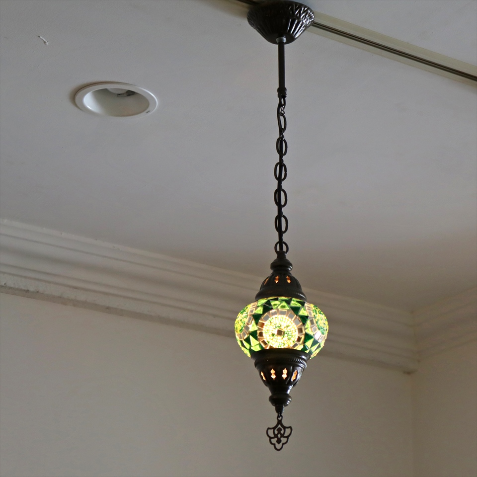 トルコランプ モザイクランプ 直径13cm 全高67cm グリーン ペンダントライト
