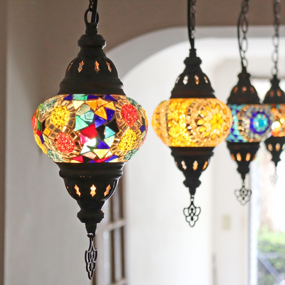 トルコランプ モザイクランプ 直径13cm 全高67cm ミックスカラー ペンダントライト